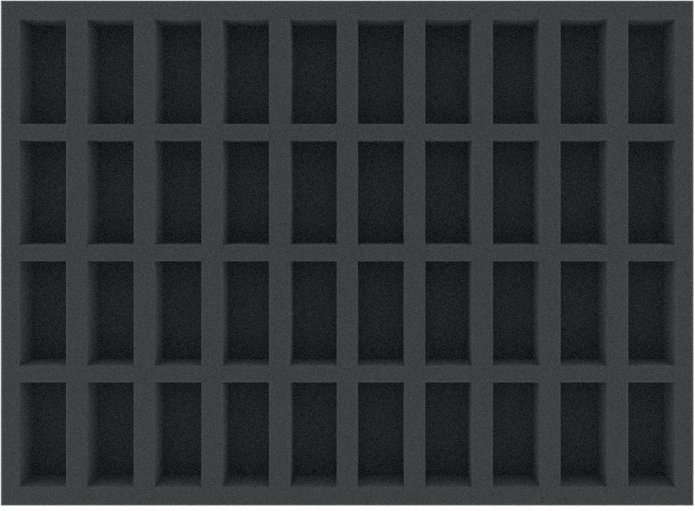 Ta piankowa taca o wysokości 35 mm jest podzielona na 40 przegródek. Jest ona szczególnie odpowiednia do bezpiecznego przechowywania miniatur gier stołowych i planszowych, a także innych delikatnych modeli i małych części.