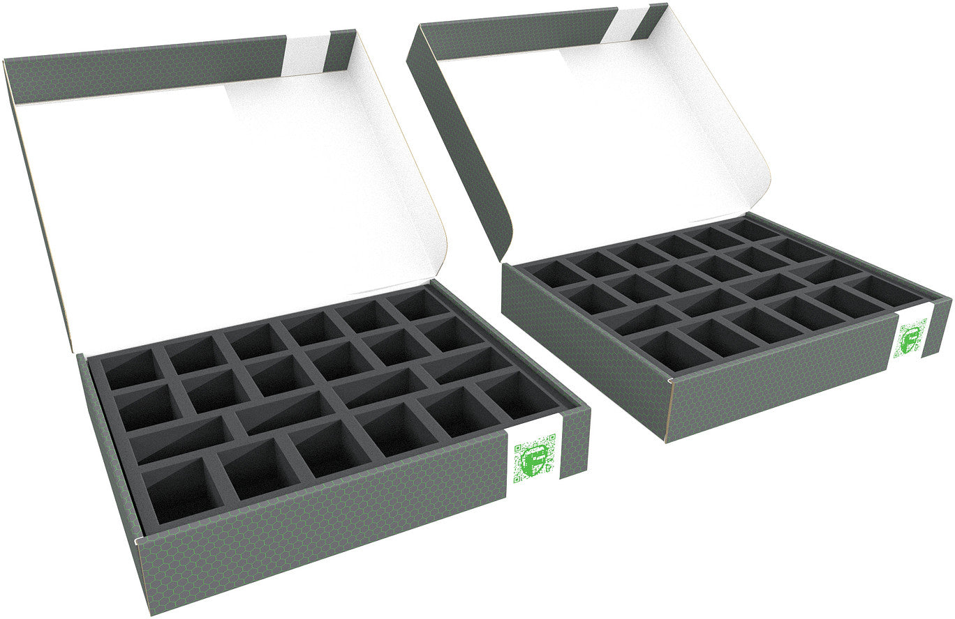 Zestaw zawiera dwa wytrzymałe pudełka do przechowywania Storage Boxes FSLB055 z pasującymi tacami piankowymi Feldherr, idealne do przechowywania i bezpiecznego transportu do 44 modeli wojowników z kolekcji "Star Wars: Shatterpoint".
