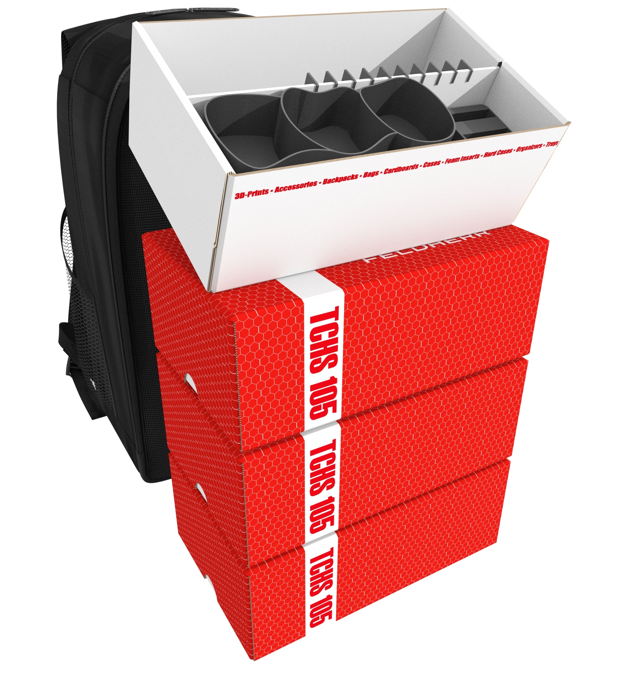 - Cztery układane w stos pudełka na karty bezproblemowo pasują do Feldherr Backpack, zapewniając kompaktowe i zorganizowane rozwiązanie do przechowywania.