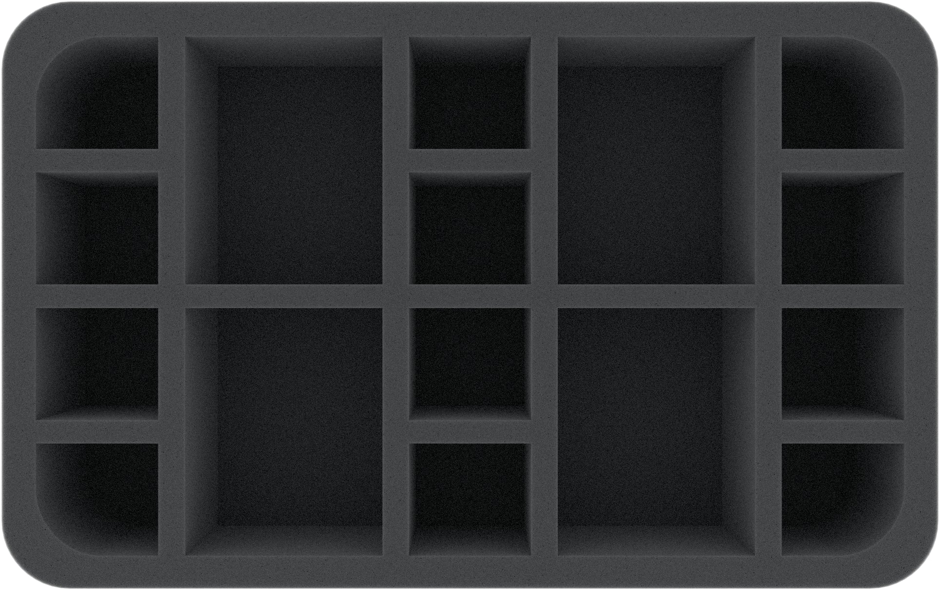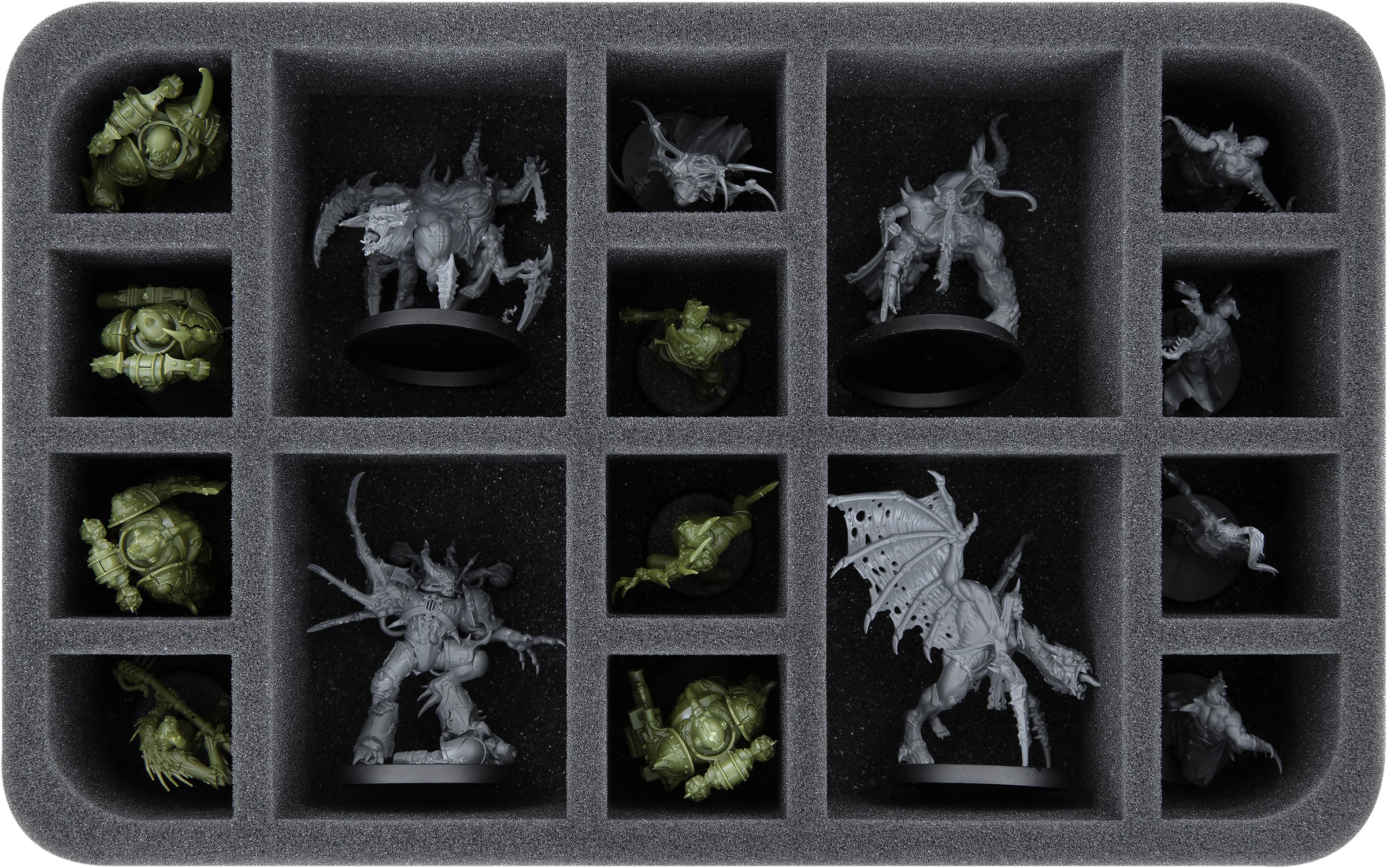 Łącznie 16 przegródek w 2 różnych rozmiarach na tej piankowej podstawce Half-Size chroni Twoje ohydne Chaos Space Marines. Małe i średnie miniatury znajdują tu bezpieczne schronienie, a Ty możesz je bezpiecznie transportować.