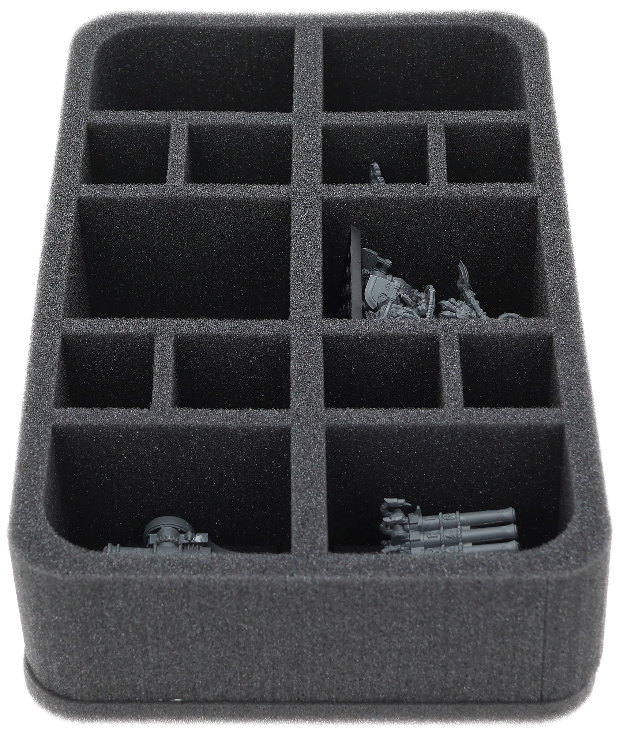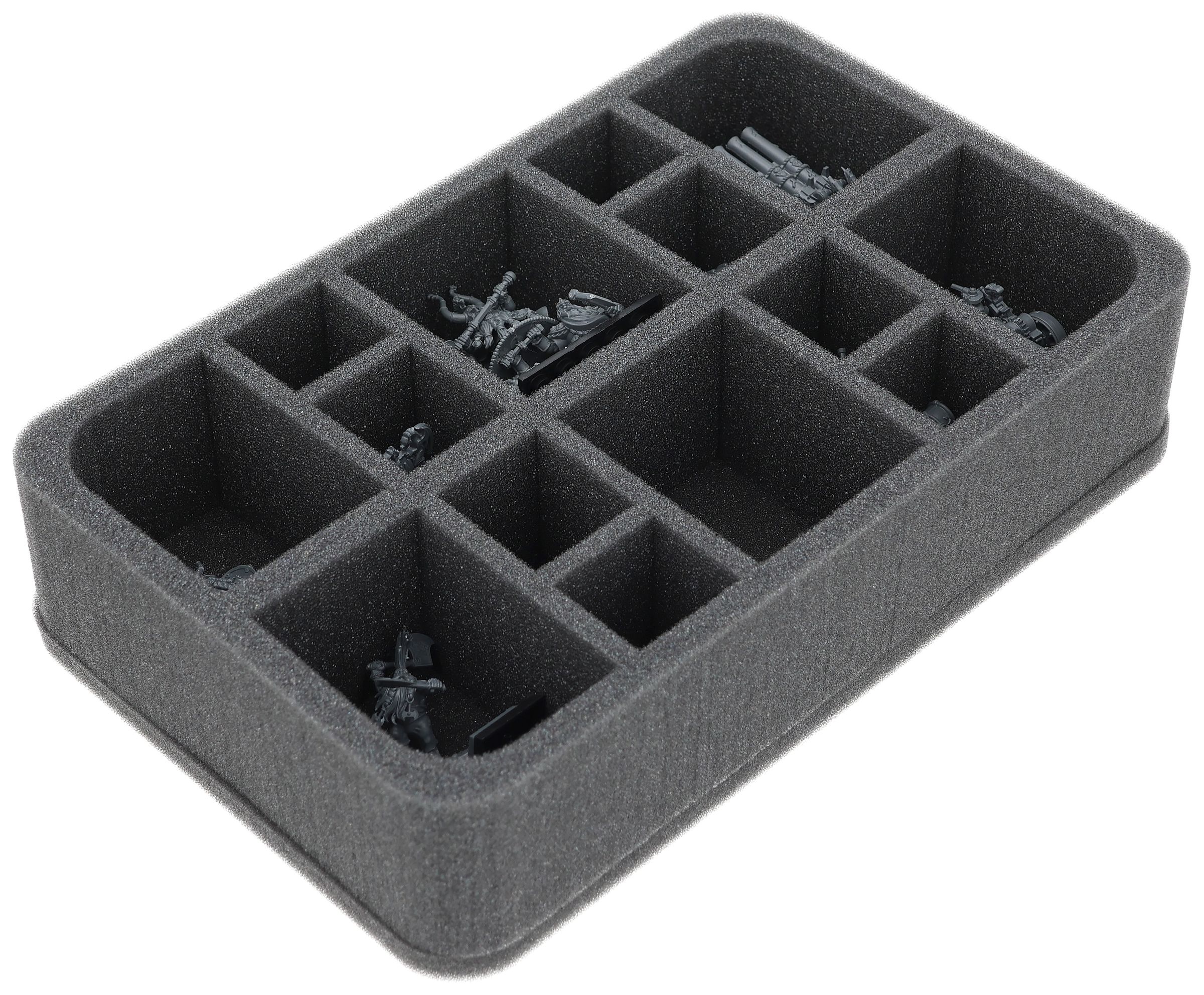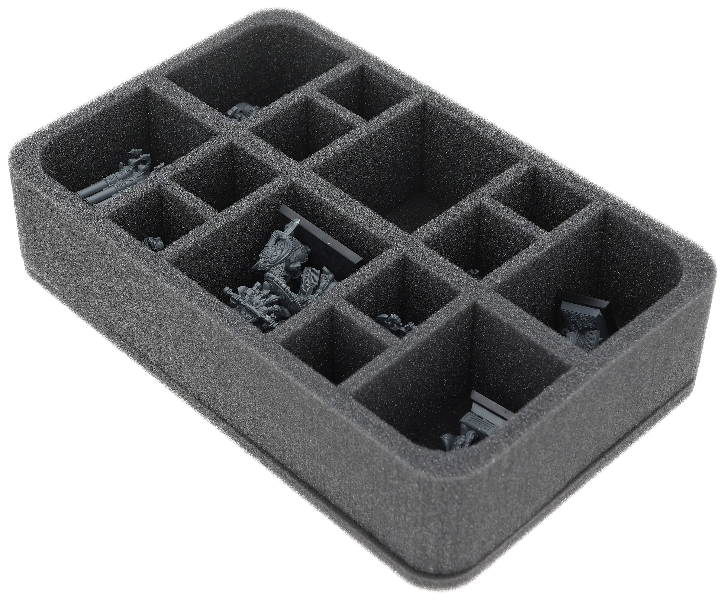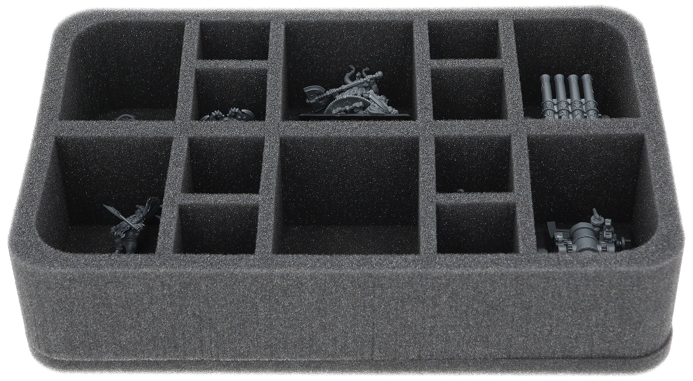 Na tej piankowej tacy Feldherr masz miejsce na maksymalnie 14 miniatur swojej armii. Wkładka nadaje się szczególnie do przechowywania Dwarf King With Oathstone, Dwarf Slayer of Legend, Dwarf Lords with Shieldbearers, Dwarf Cannon & Organ Gun i modeli o podobnych rozmiarach.