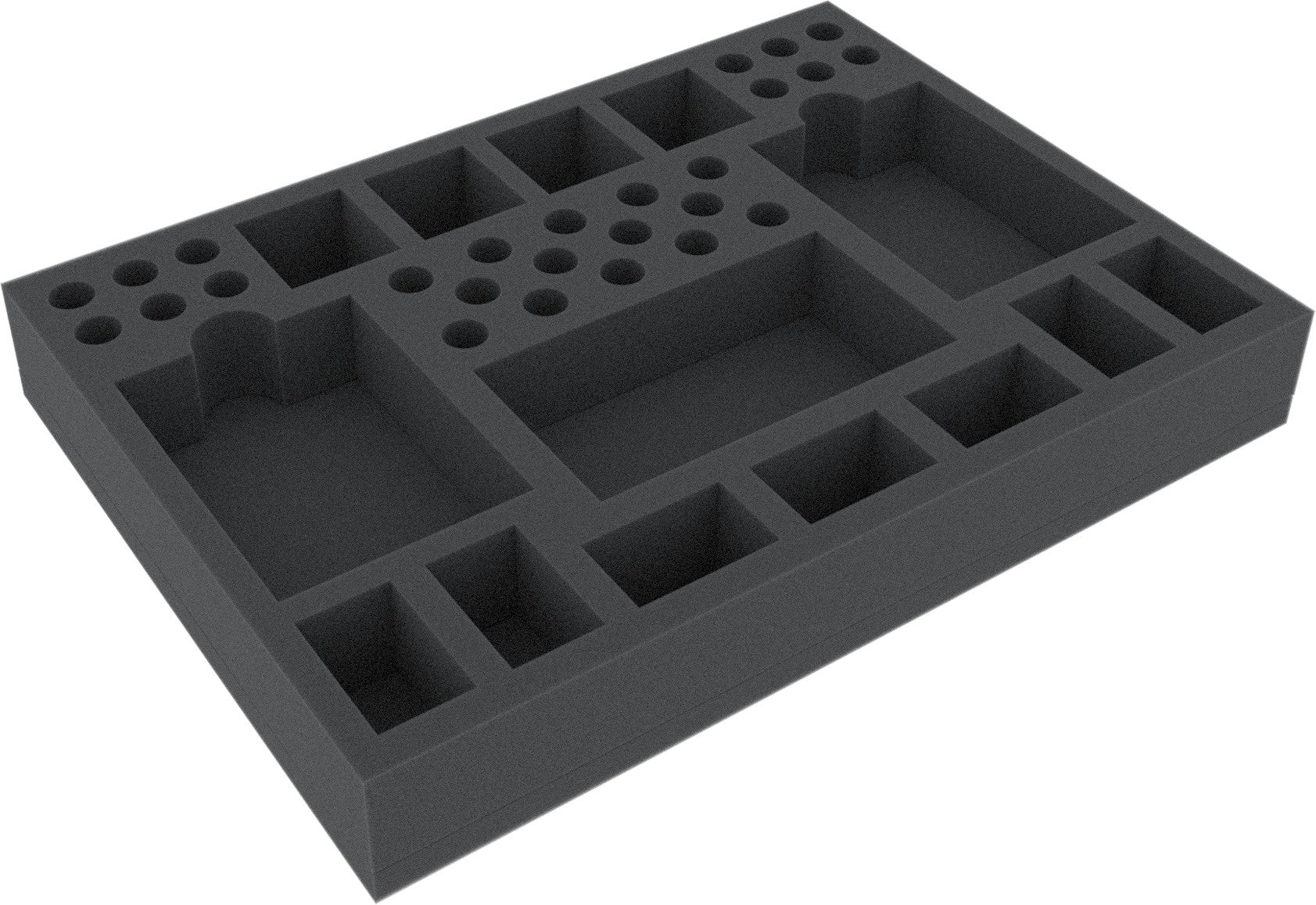 This 40 mm high foam tray is divided into 40 compartments. It is particularly suitable for the safe storage of tabletop and board game miniatures, as well as other fragile models and small parts.