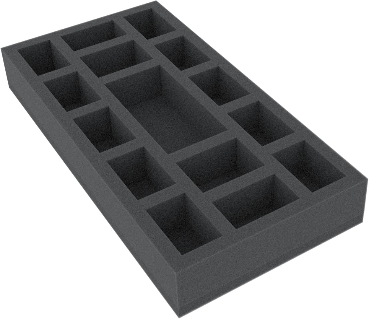 This foam tray is divided into 15 compartments and is ideal for the safe storage of smaller miniatures and for the clear sorting of game material.
