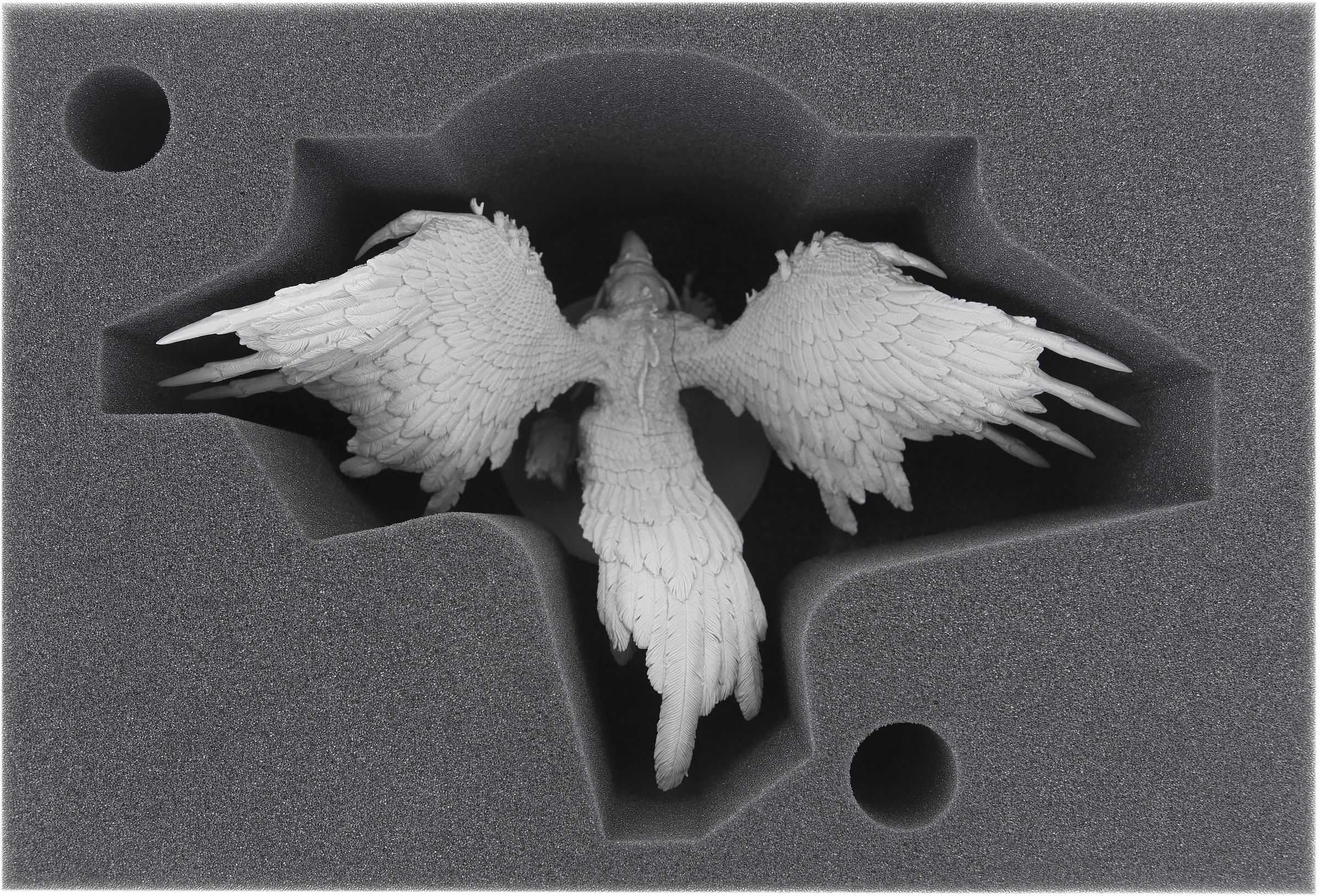 Fits the original Kingdom Death Monster 1.5 + 1.6 base box: Two-piece inlay for Phoenix. Because the Phoenix is quite large, we have made a two-part insert. Among other things, we considered that the Phoenix can be variably positioned on the base. In order to use the space in the base part reasonably, this also has additional space for some large models. The upper part of the foam insert lies on the base part and protects the Phoenix from the side and from above. The Phoenix foam insert lies on the plastic insert for the cards (far too beautiful not to use!).