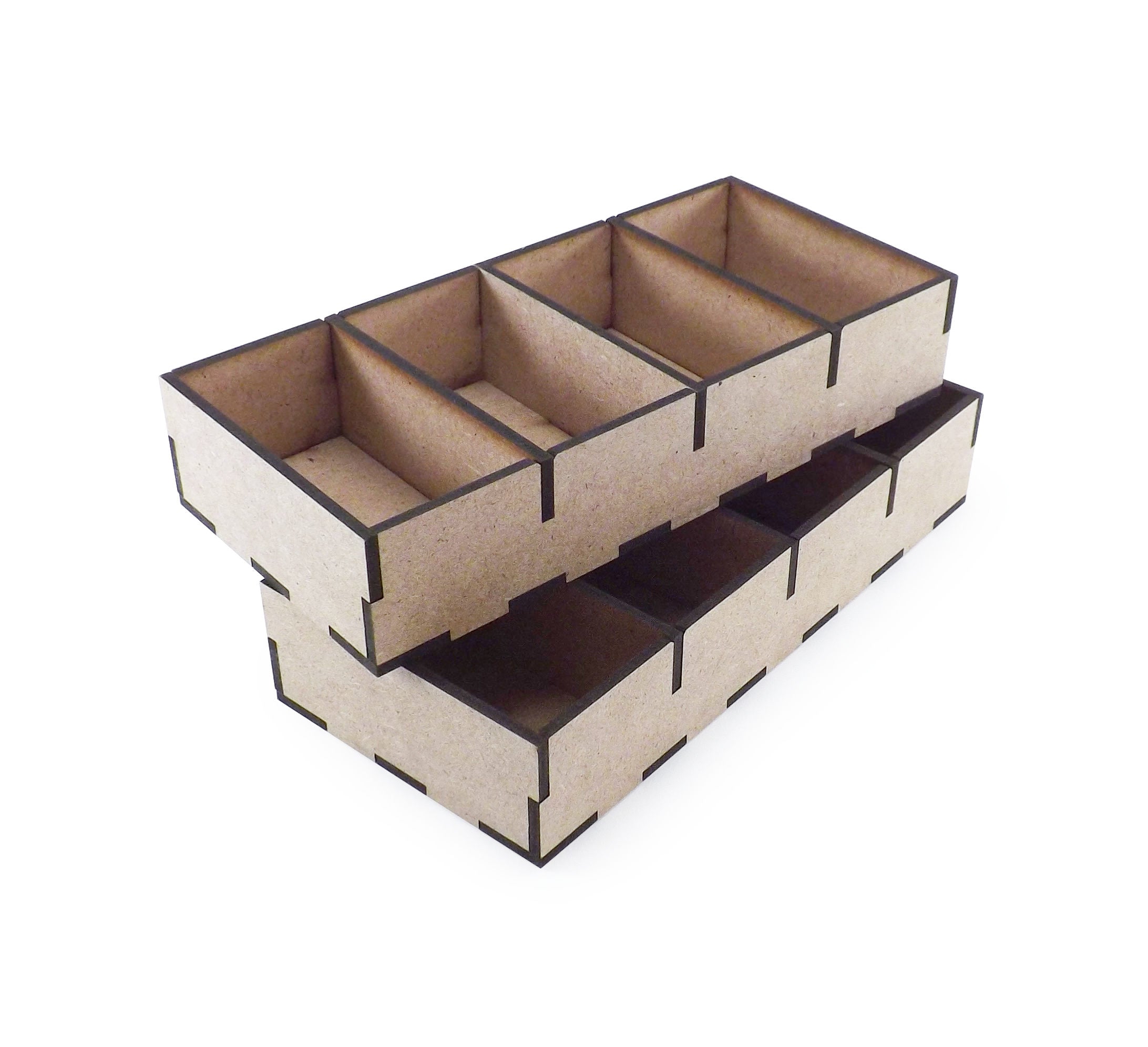 Offers 8 compartments total. If dividers remain unglued, compartment sizes remain variable. As an alternative bigger token tray set CABI-BTOK also available. Only one set of trays per CABI possible!