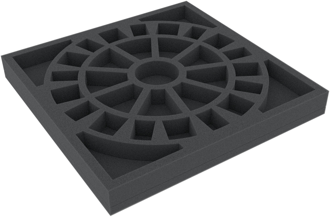 This foam tray with 32 compartments allows you to sensibly sort and safely store Founders of Gloomhaven game components in the original game box.