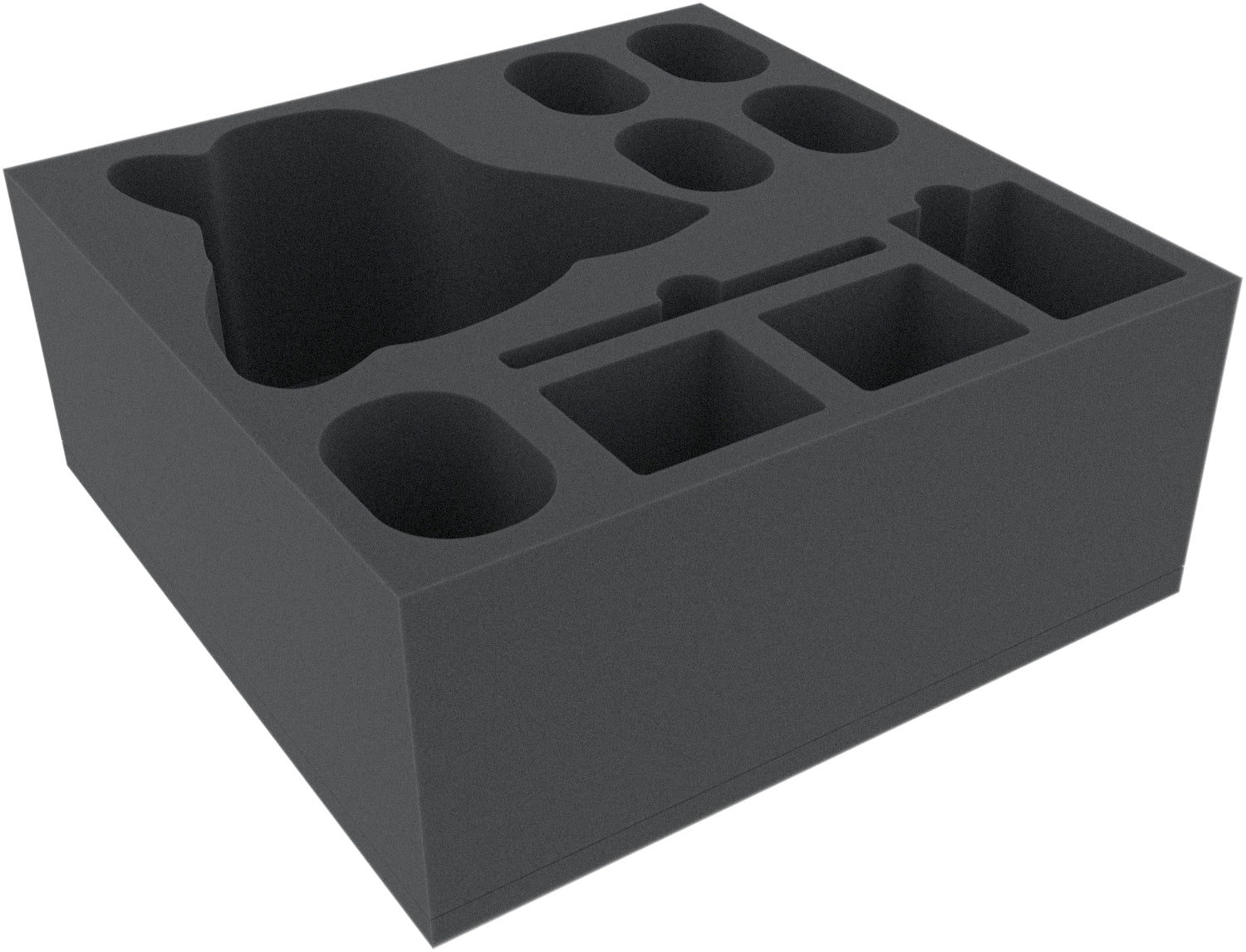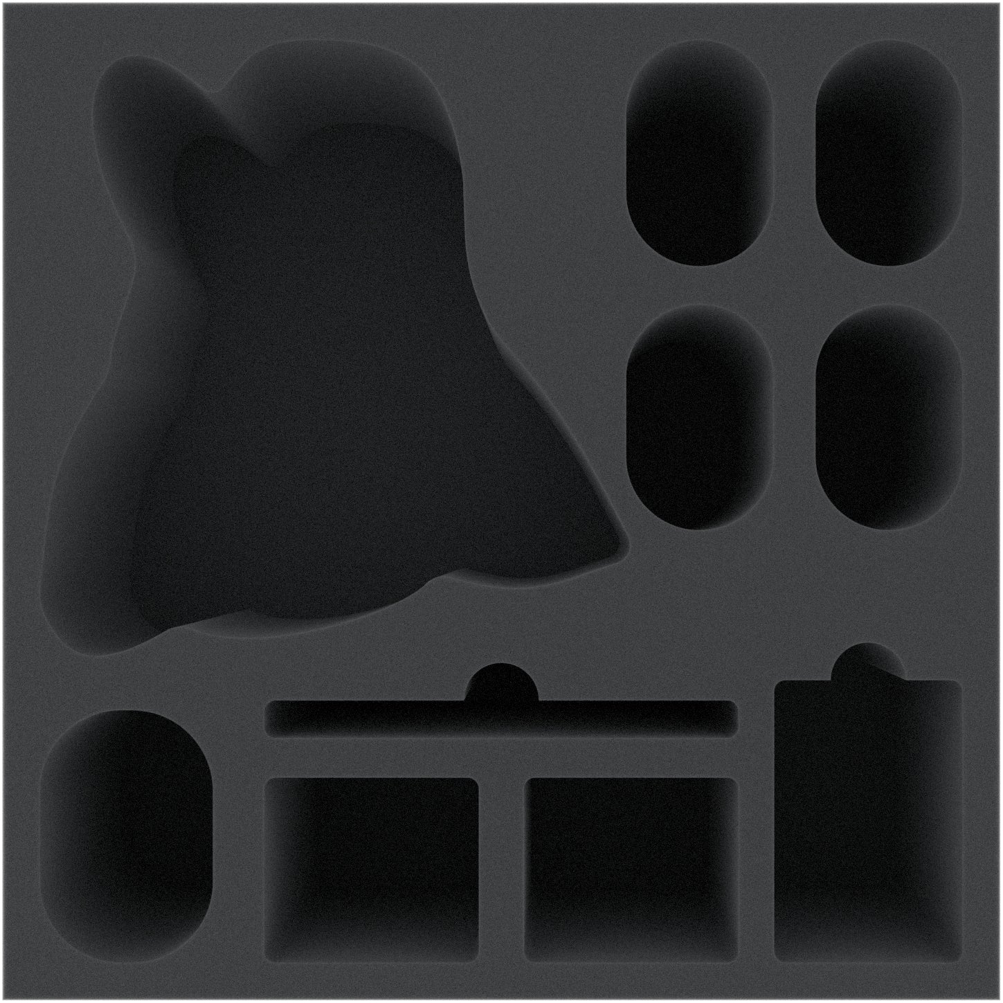 • The foam tray has the dimensions: 265 mm x 265 mm x 110 mm total height (100 mm usable height + 10 mm foam base)