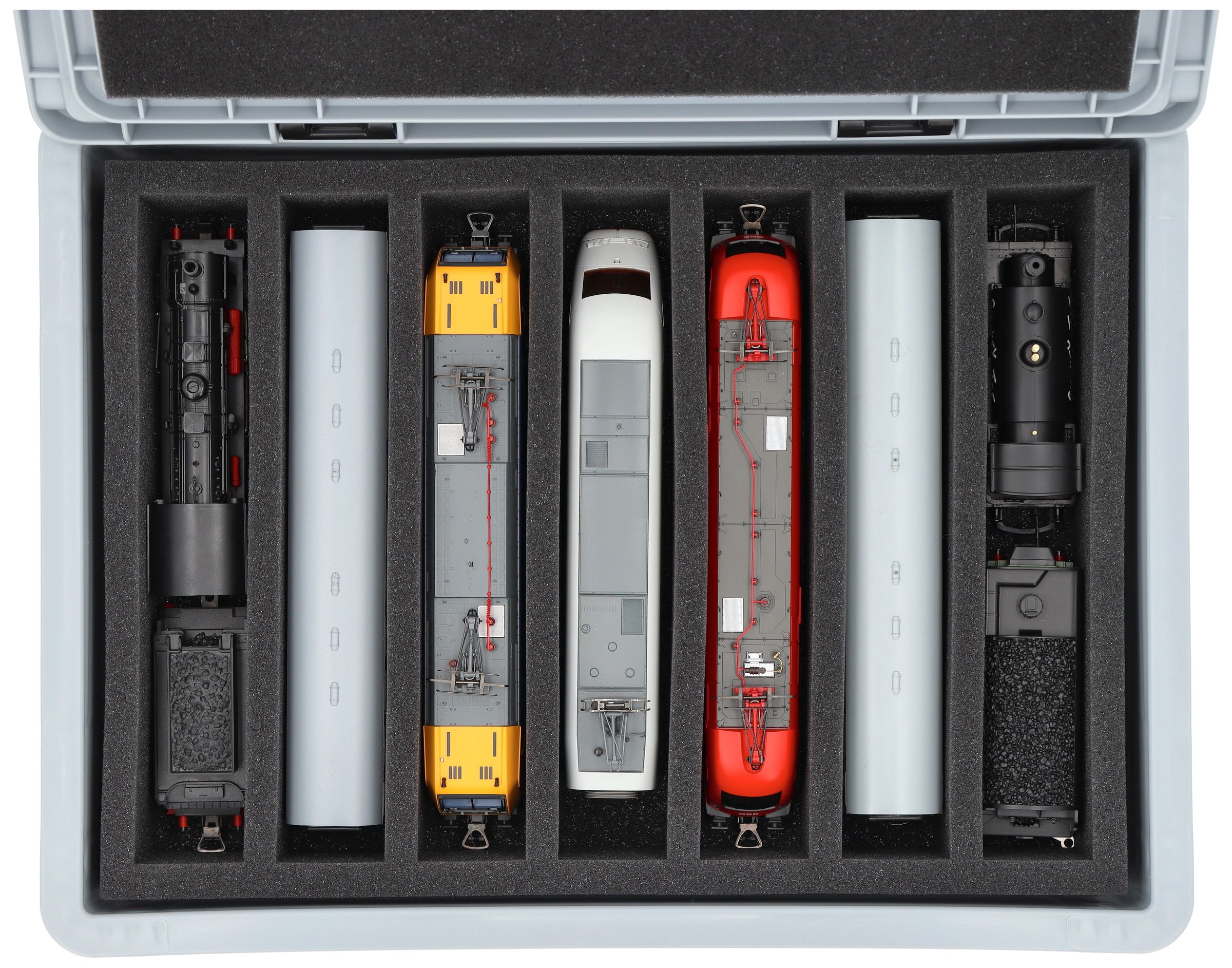 • 7 compartments - foam insert for upright storage of locomotives, wagons and vehicles