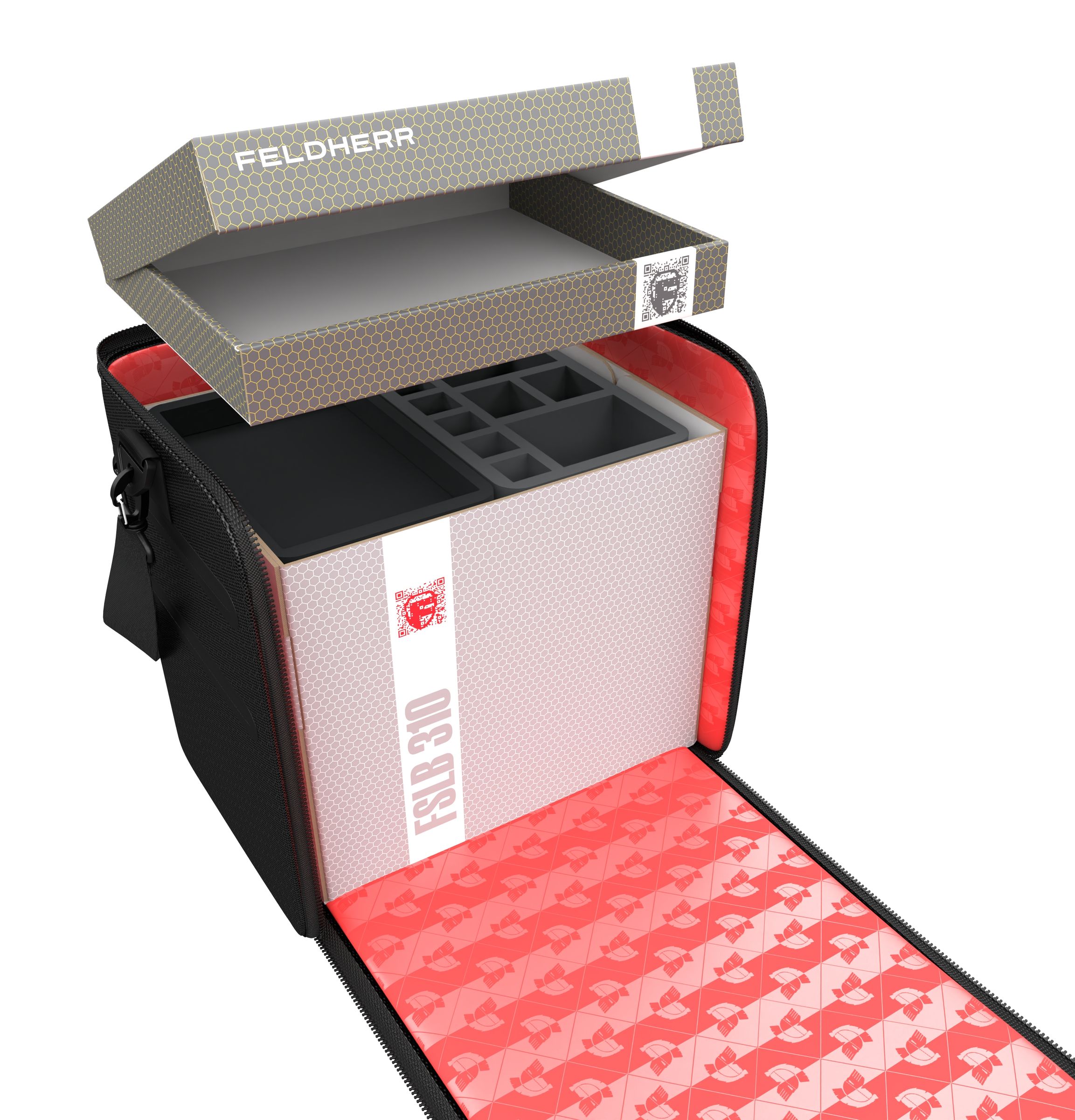 The TCHS105 card box and foam trays fit exactly into the large Storage Box FSLB310. The Feldherr Storage Boxes FSLB310 and FSLB040 are made of coated, single-wall cardboard. This means that they are not only pleasantly light, but also particularly tear-resistant and stable. The attachable lid of the FSLB310 reliably protects the contents from dust and other external influences. The FSLB310 can be easily transported with the two plastic-reinforced carrying handles on the sides.