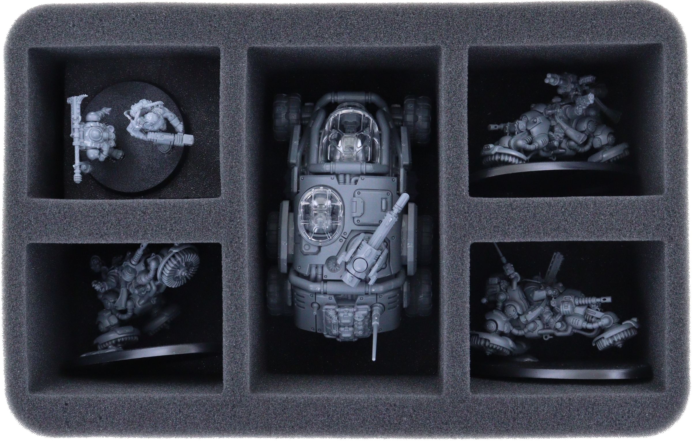 - 1 Half-Size foam tray with 5 compartments for e.g. 1 Sagitaur + Hernkyn Pioneers (HS090A010)
