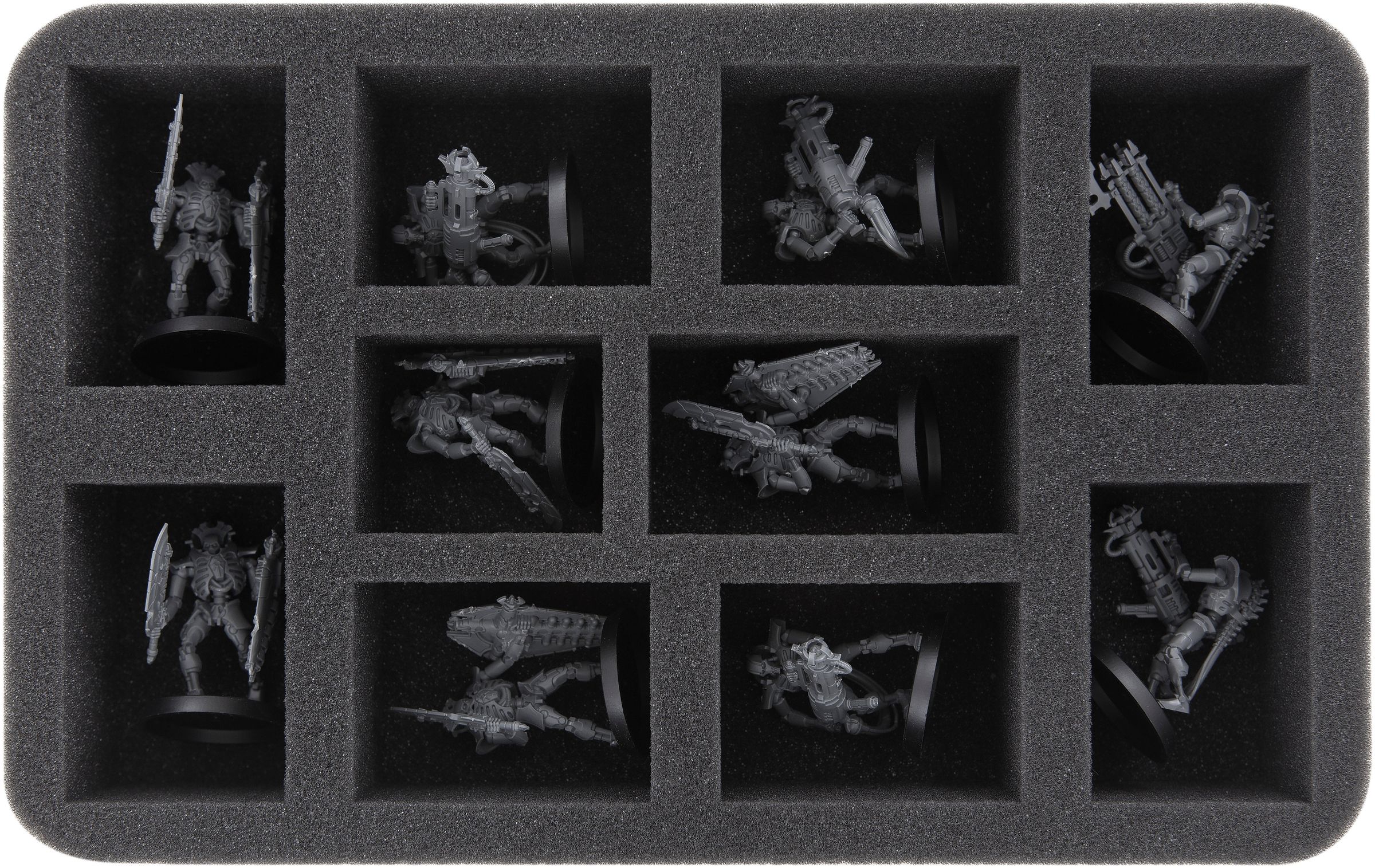 Cryptothralls and Necron Warriors find a safe hiding place in the 25 compartments of the Full-Size mat FSLQ050BO.