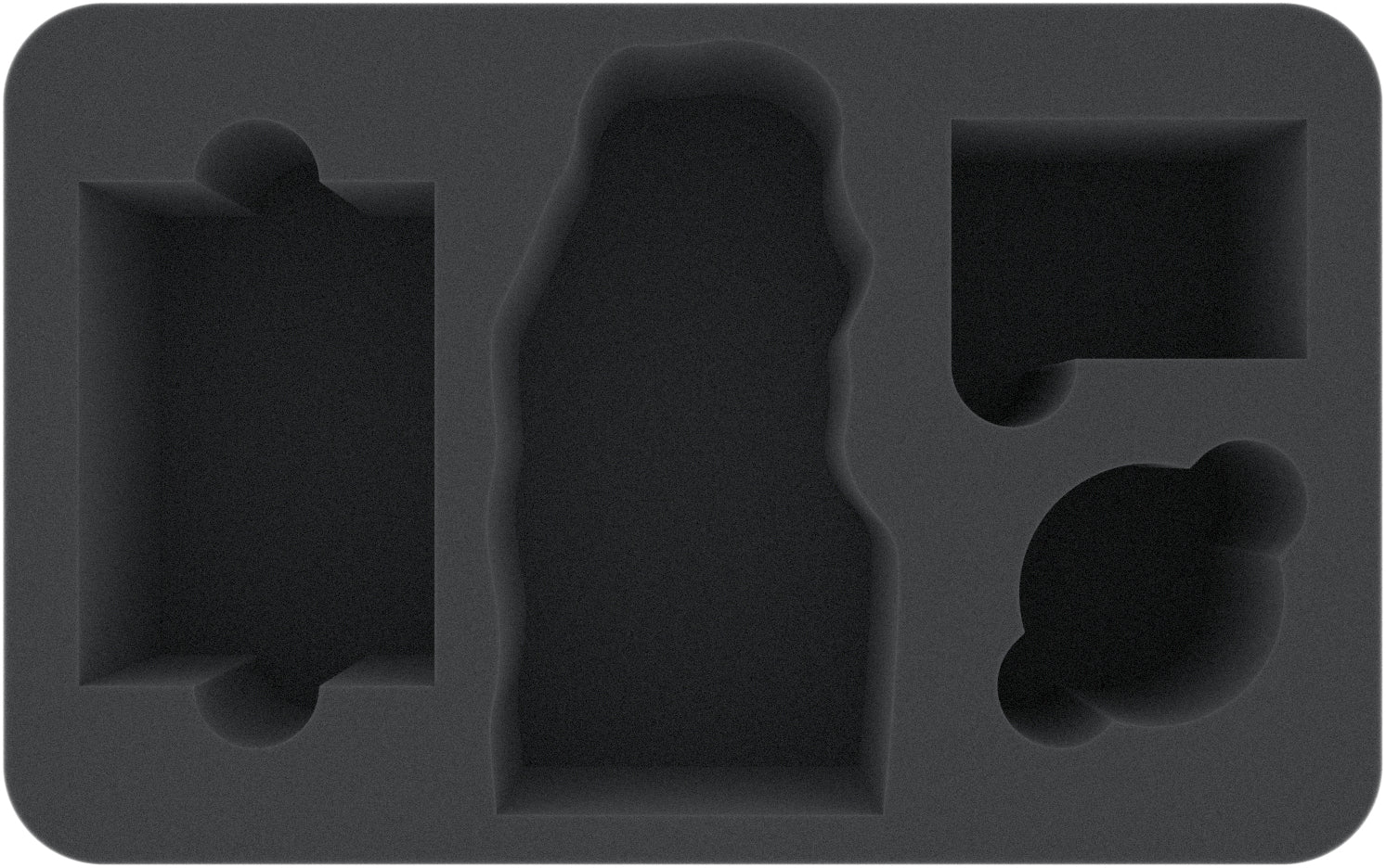 A miniature-precisely tailored compartment gives the boss a safe home. Thanks to the exact cut, the miniature stays in its softly padded place even during transport. The painted model is thus safe from abrasion and flaking paint.