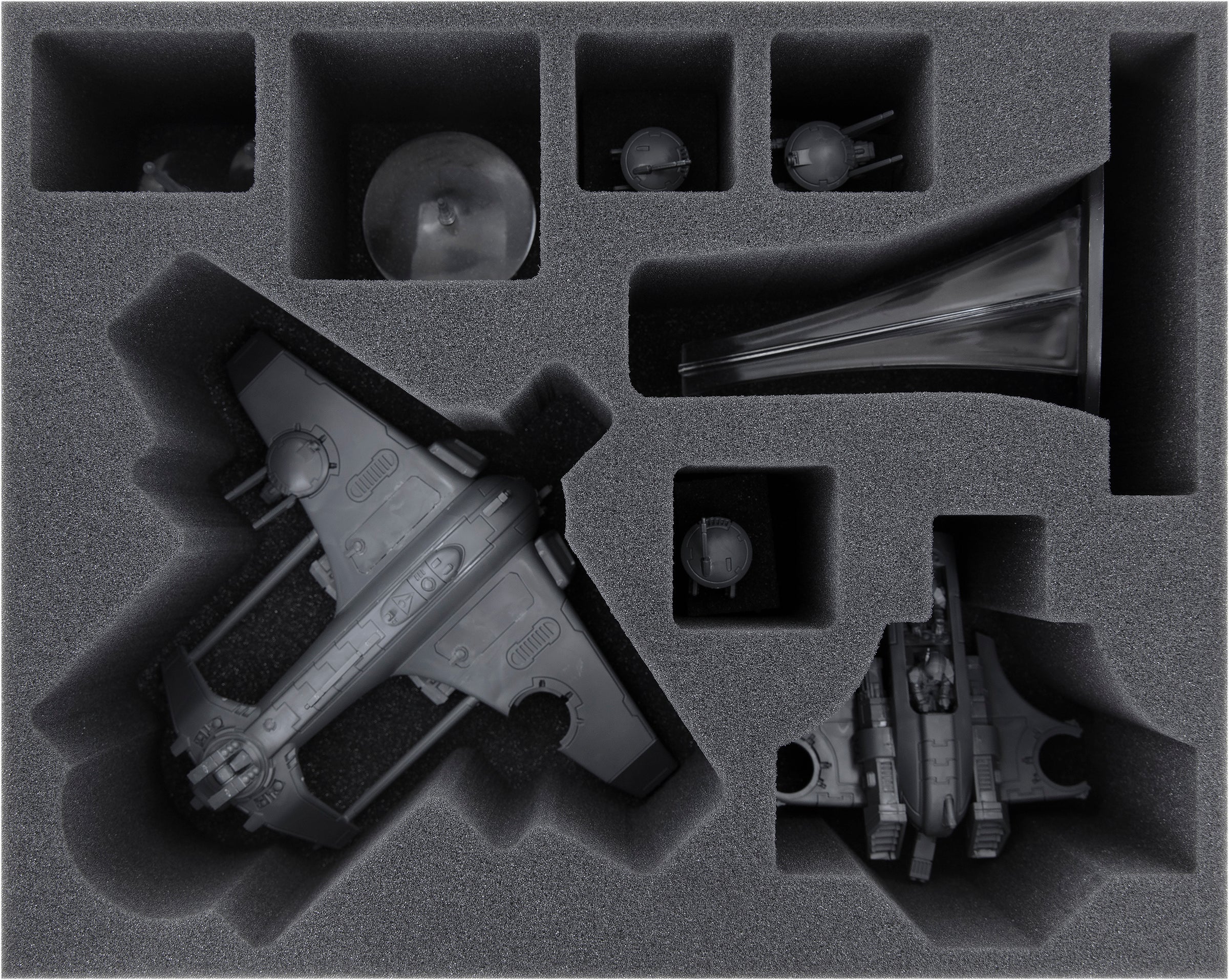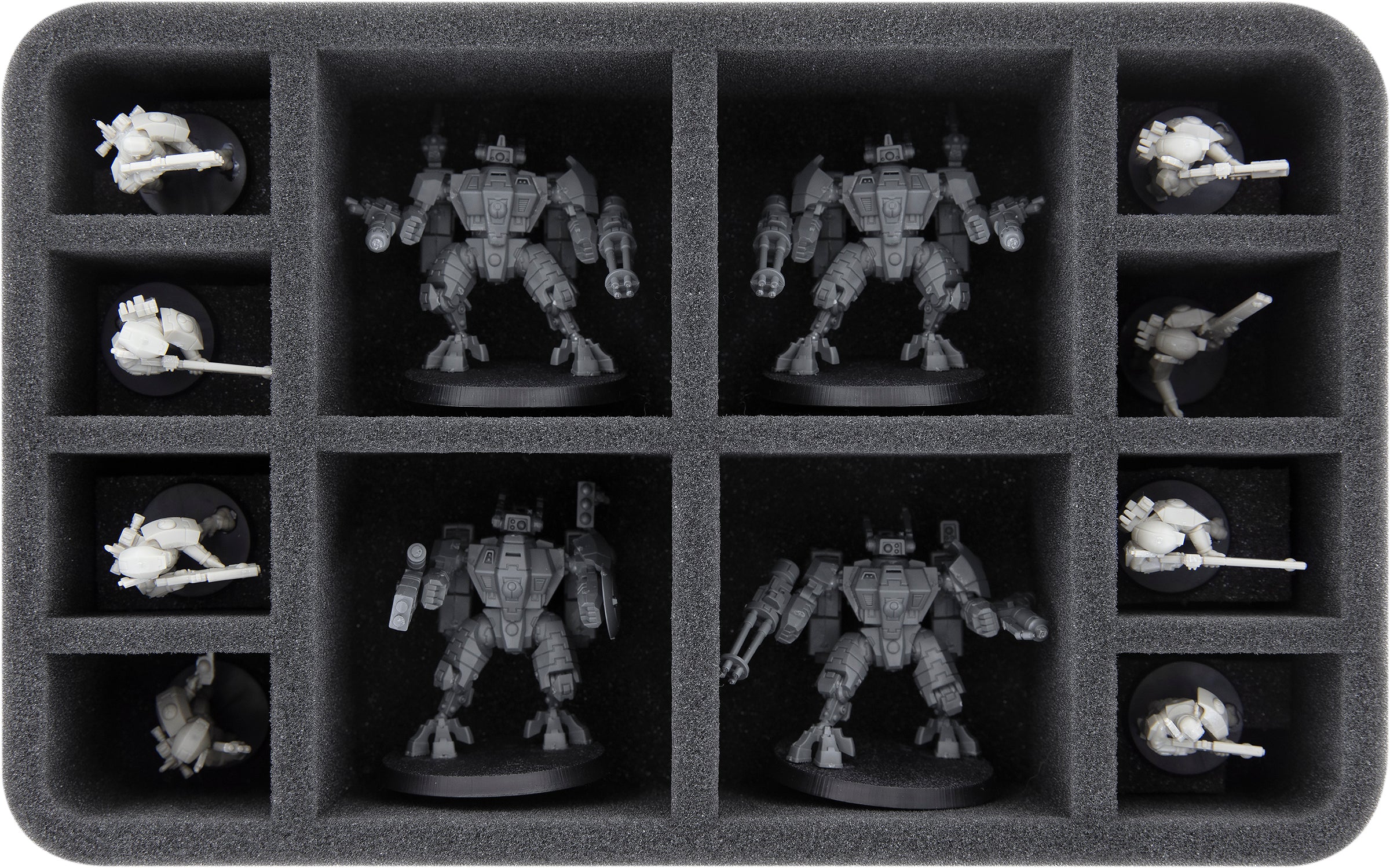 • 1 Full-Size foam tray with 22 compartments for standard infantry and XV8 Crisis battlesuit team (FS050A048BO)