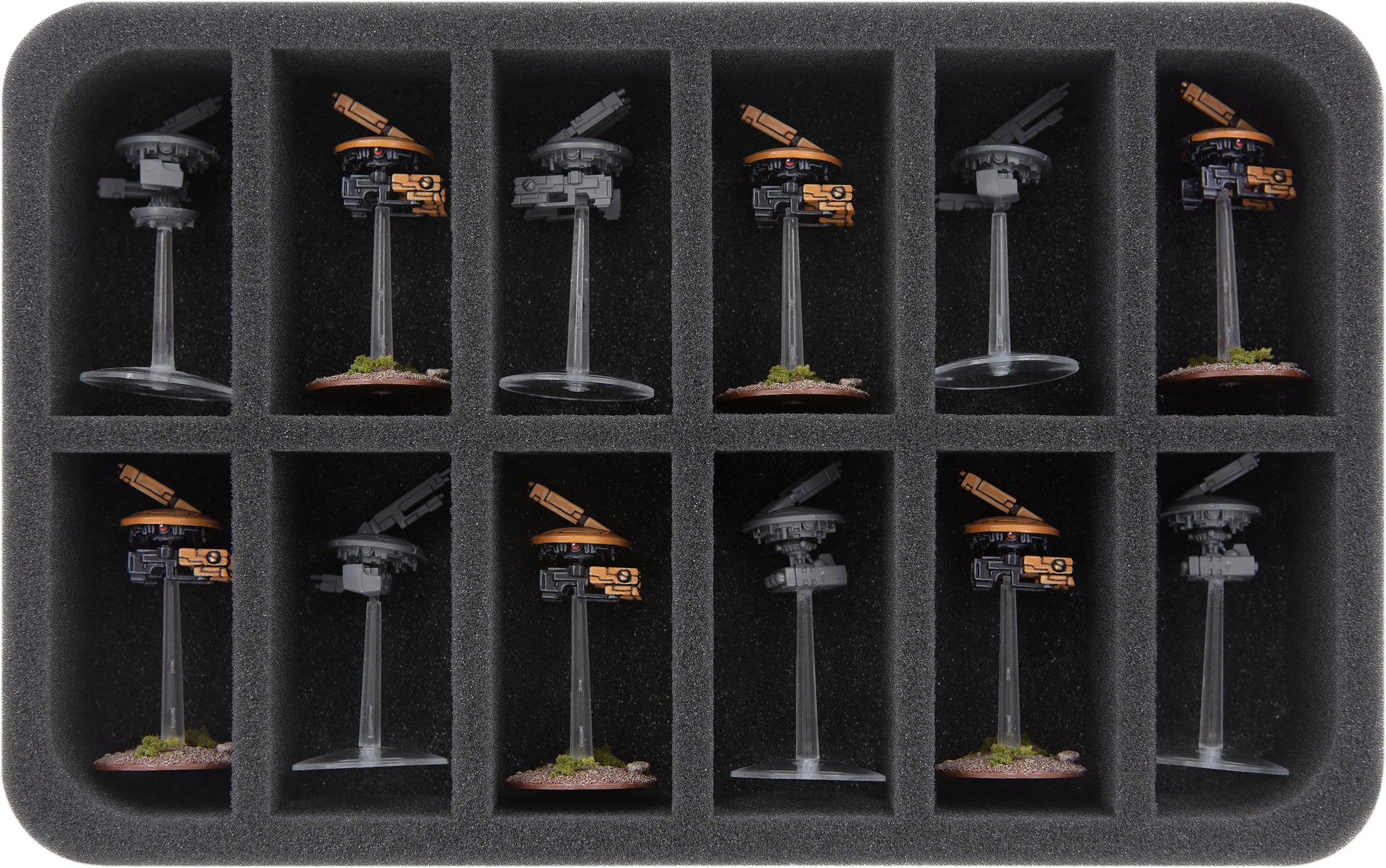 • 1 Half-Size foam tray with 12 compartments for XV85 / XV86 battlesuit and small models (HS075A010)
