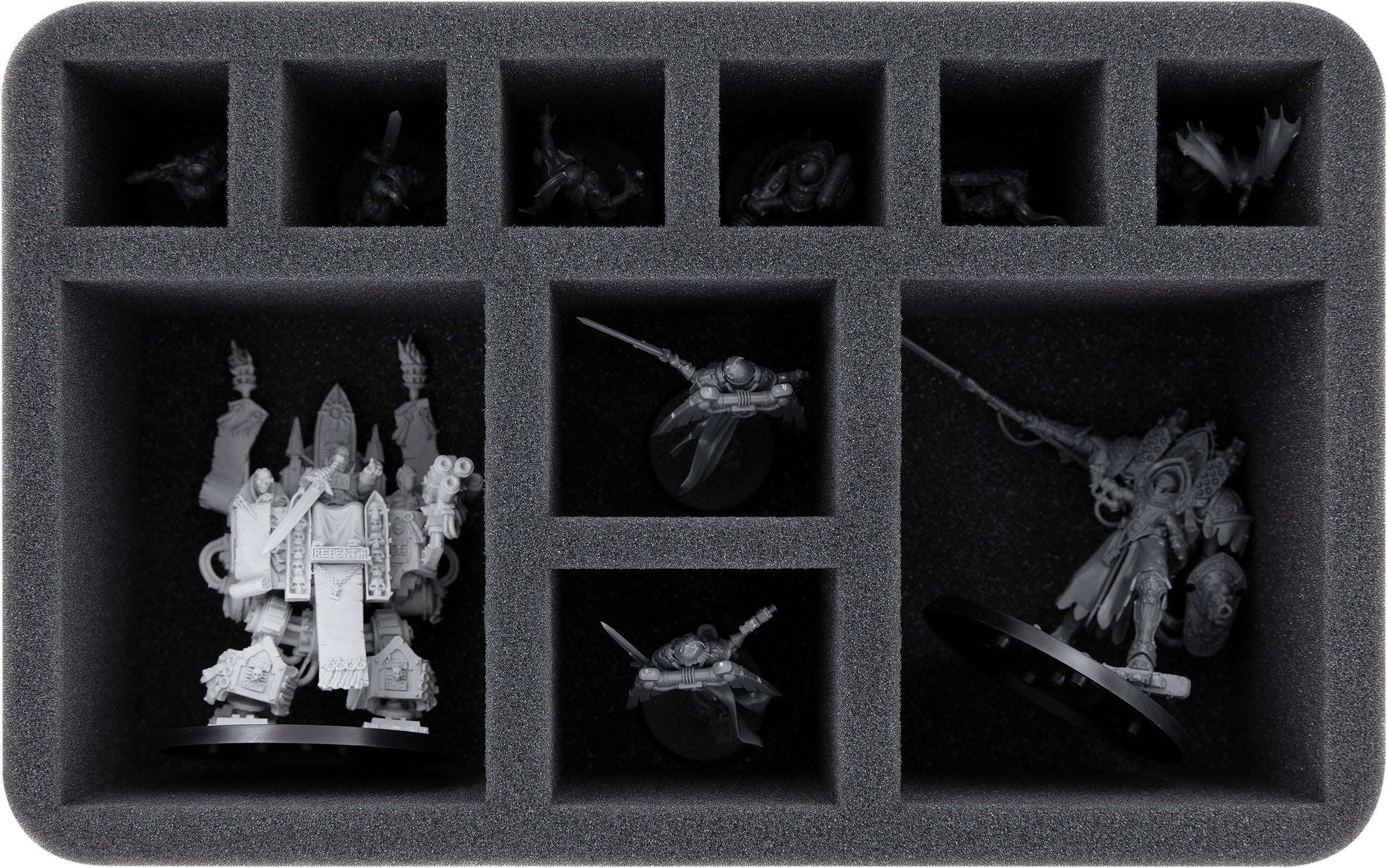 • 1 Full-Size foam tray with 4 compartments for e.g. 1 Angron + 3 Helbrute (FS125A002)
