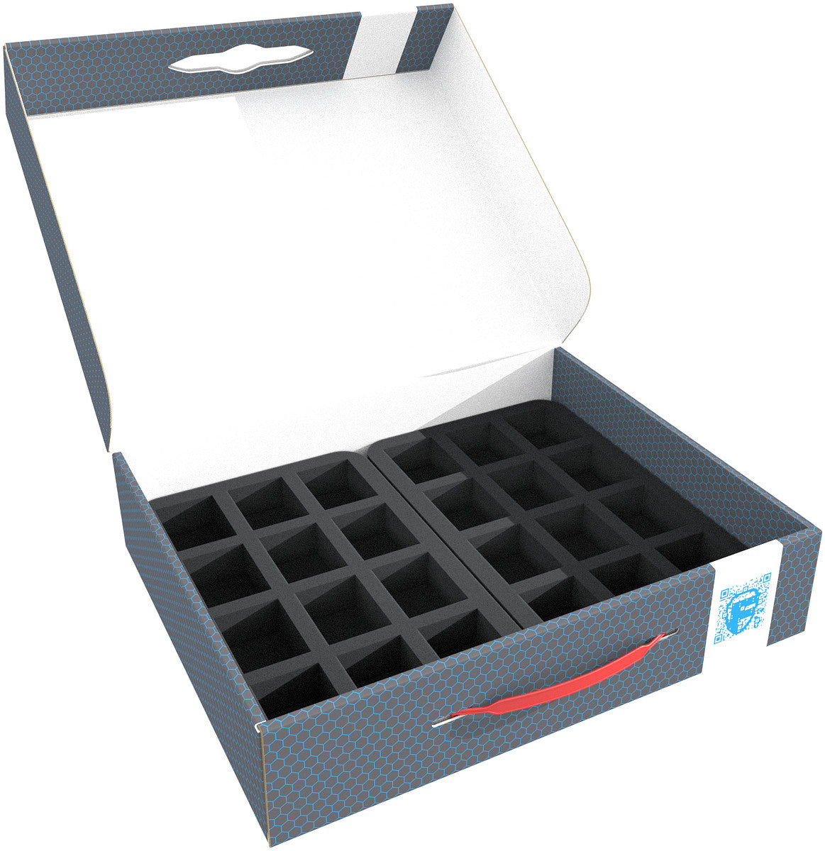 We have packed four Half-Size foam trays into the sturdy box to protect your miniatures. Whether Brimstone or Blue Horrors, each model gets its own compartment. The custom-fit cut ensures that the models sit firmly and the figures do not slip even when transported through the Warp. The high-quality foam ensures that details are well protected. The colors of your units are also preserved, and the soft foam ensures that your figures are safe from ugly scratches and color abrasion.
