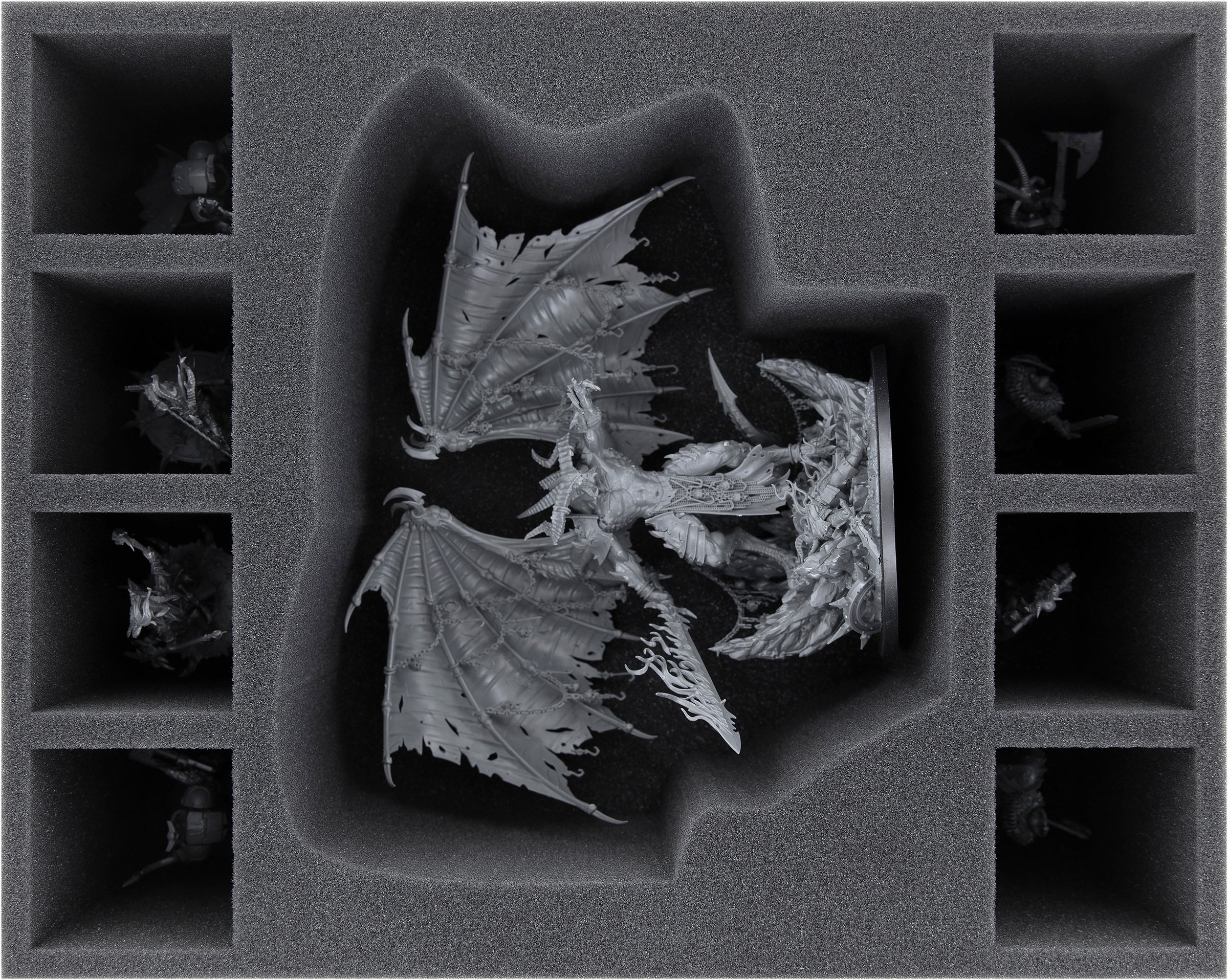 • 1 Full-Size foam tray with 8 compartments for Be’lakor and Chaos Chosen (FSMFDA110BO)