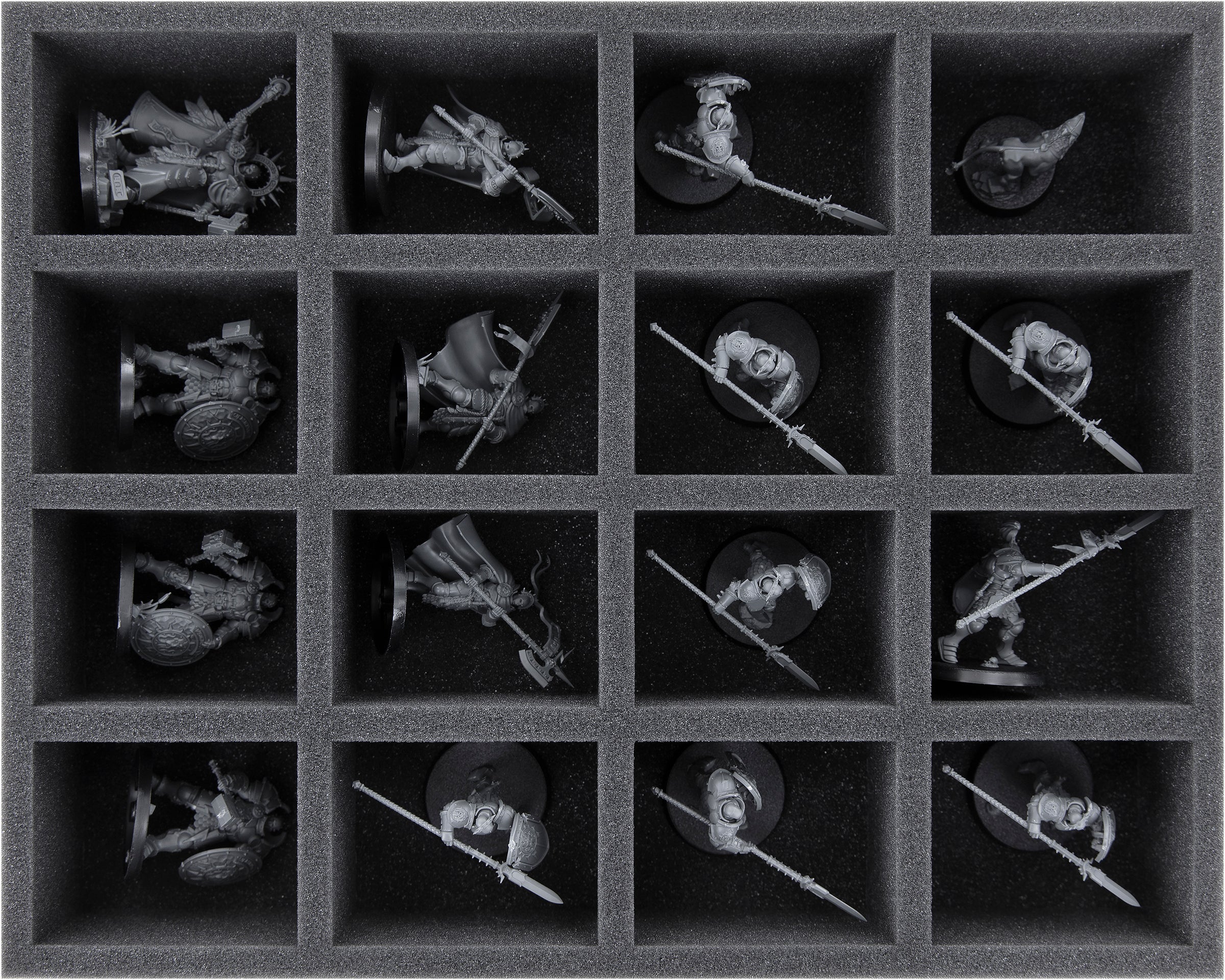 - 1 Full-Size foam tray with sixteen compartments for Vanquishers, Annihilators, Knight-Relictor, or similar-sized miniatures (FS060A012)
