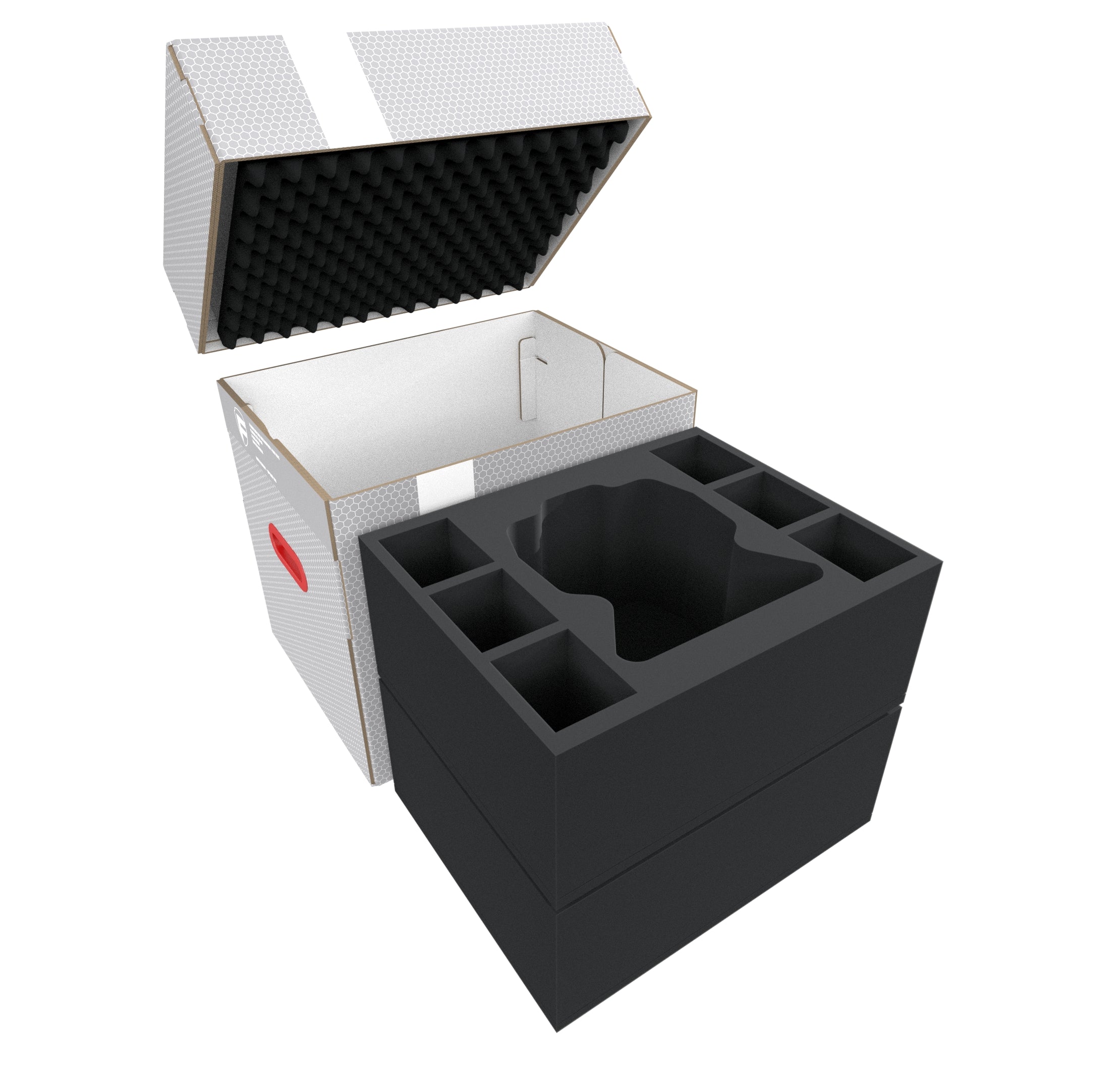 - 2 Full-Size foam trays each with 7 compartments for e.g. 1 Imperial Knight + up to 6 smaller sized models or weapon options (FSMEVN140BO)