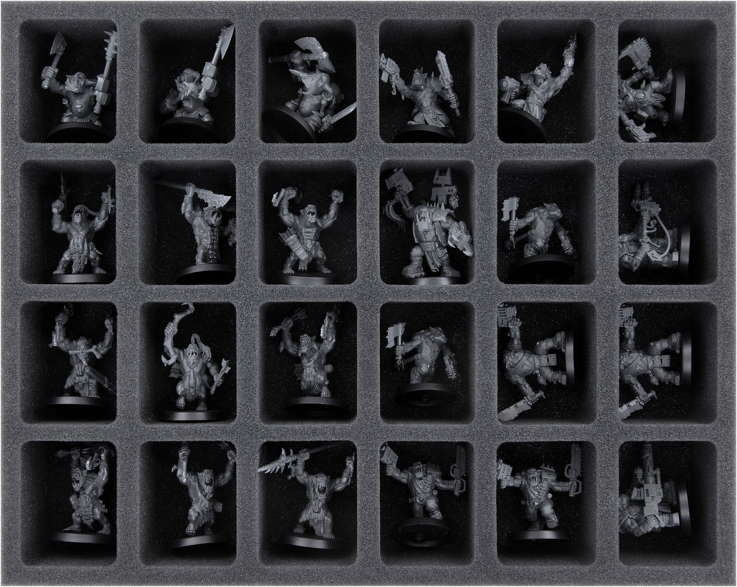 This Storage Box FSLB310, filled with matching Feldherr foam trays, provides space for all 40 miniatures from the Orks: Battleforce – Killdakka WarbandSet by GamesWorkshop.