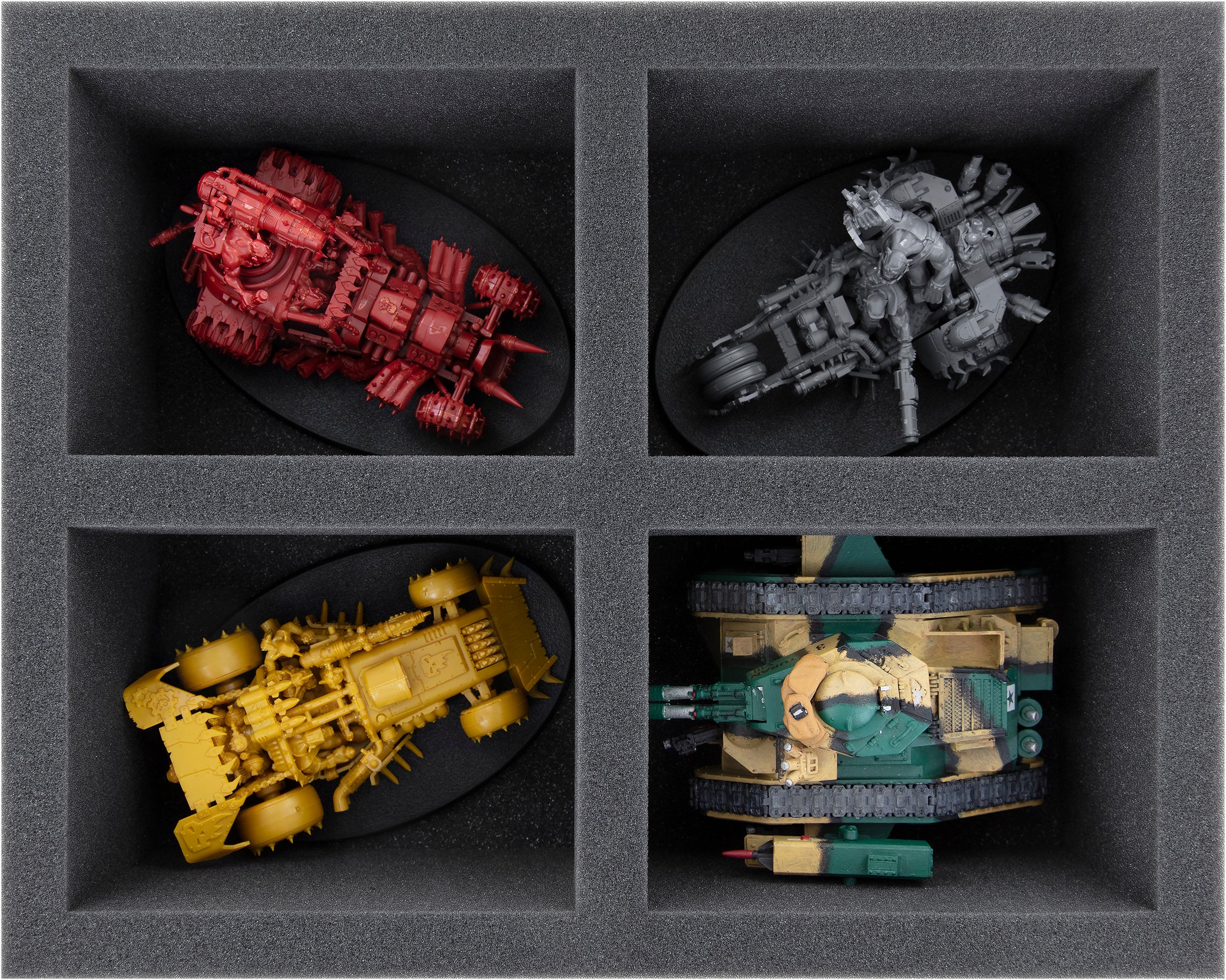 Custom-fit compartments made of soft foam reliably protect your miniatures from damage and also ensure that your painted units arrive safely at the tabletop without scratches.