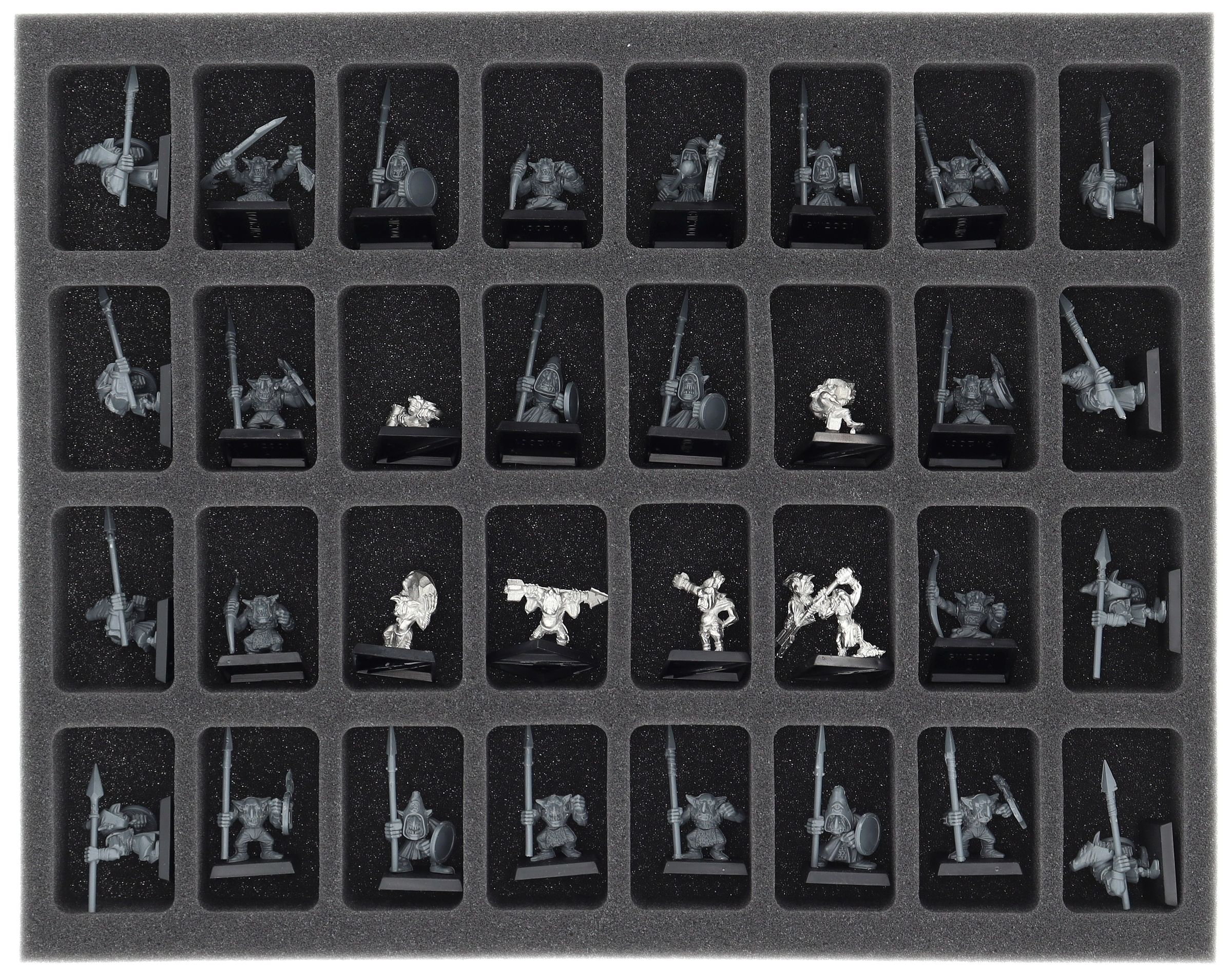 • 1 x FS040A042 - Full-Size foam tray with 32 compartments for e.g. Orc Boyz Mob, Night Goblin Mob, Goblin Mob, Doom Diver Catapult, Goblin Bolt Throwa