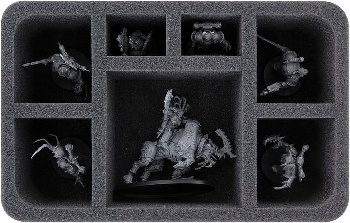 • 1 Half-Size foam tray with seven compartments for Chaos General on Moloch of Khorne, Exalted Eightbound, and miniatures of similar dimensions (HS080A022)