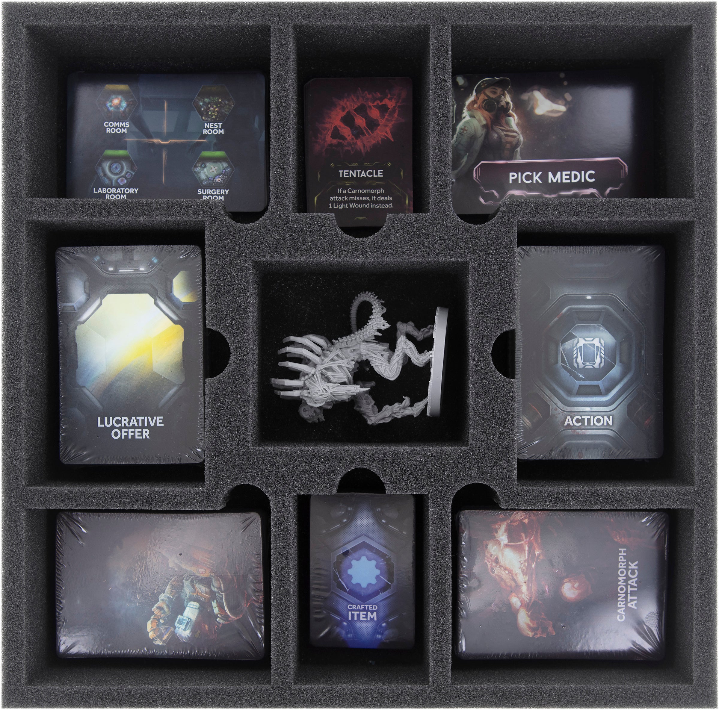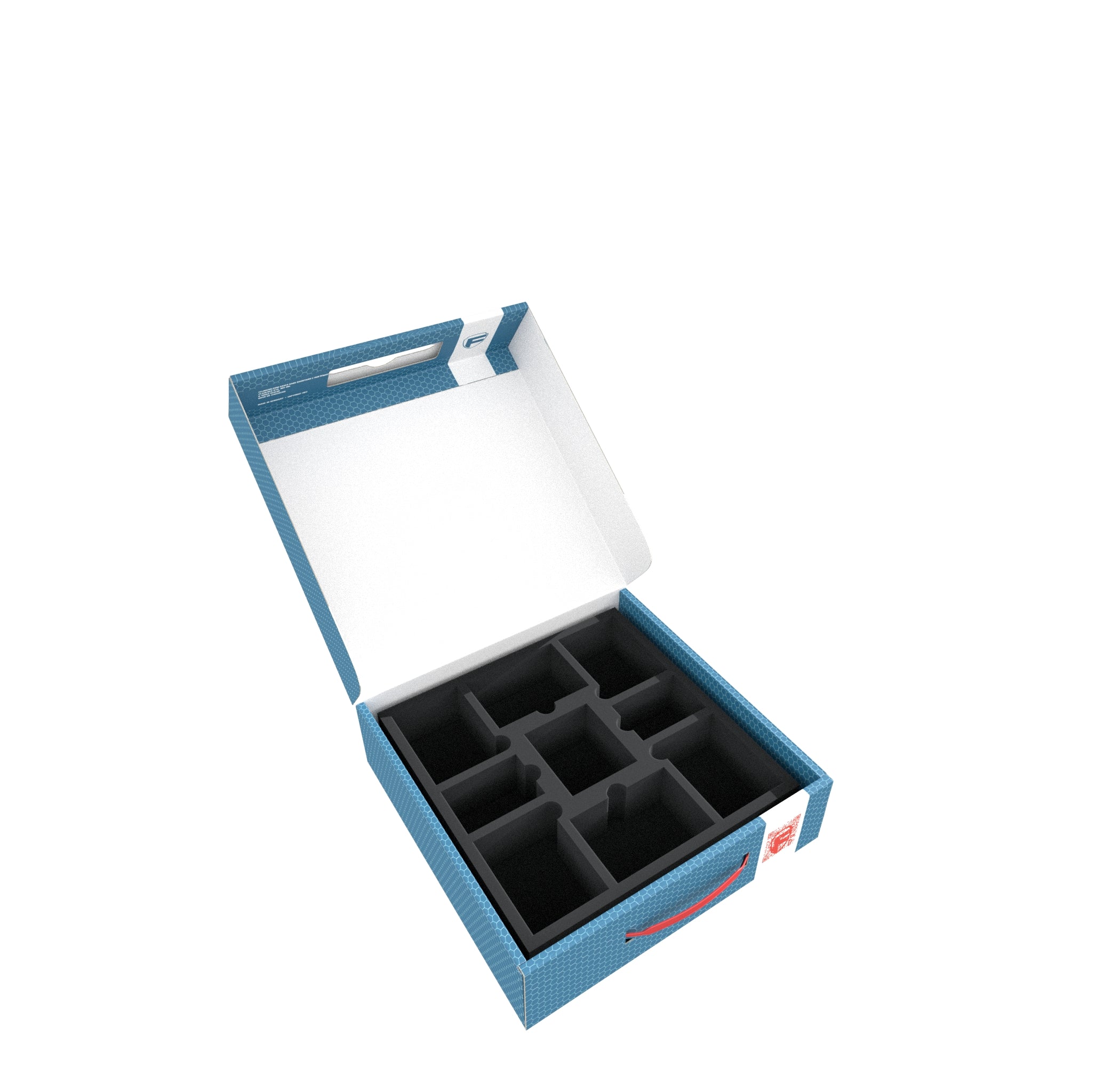 The Feldherr foam tray has 9 compartments which will hold board game accessories, American Mini cards, European Mini cards, American Board Game cards, European Board Game cards and standard cards. Ideal for Star Wars: X-Wing, Star Wars: Armada, Star Wars: Legion or similar games. The fine-pored foam reliably protects your figures – fragile parts remain intact, the color of painted models remains unharmed.