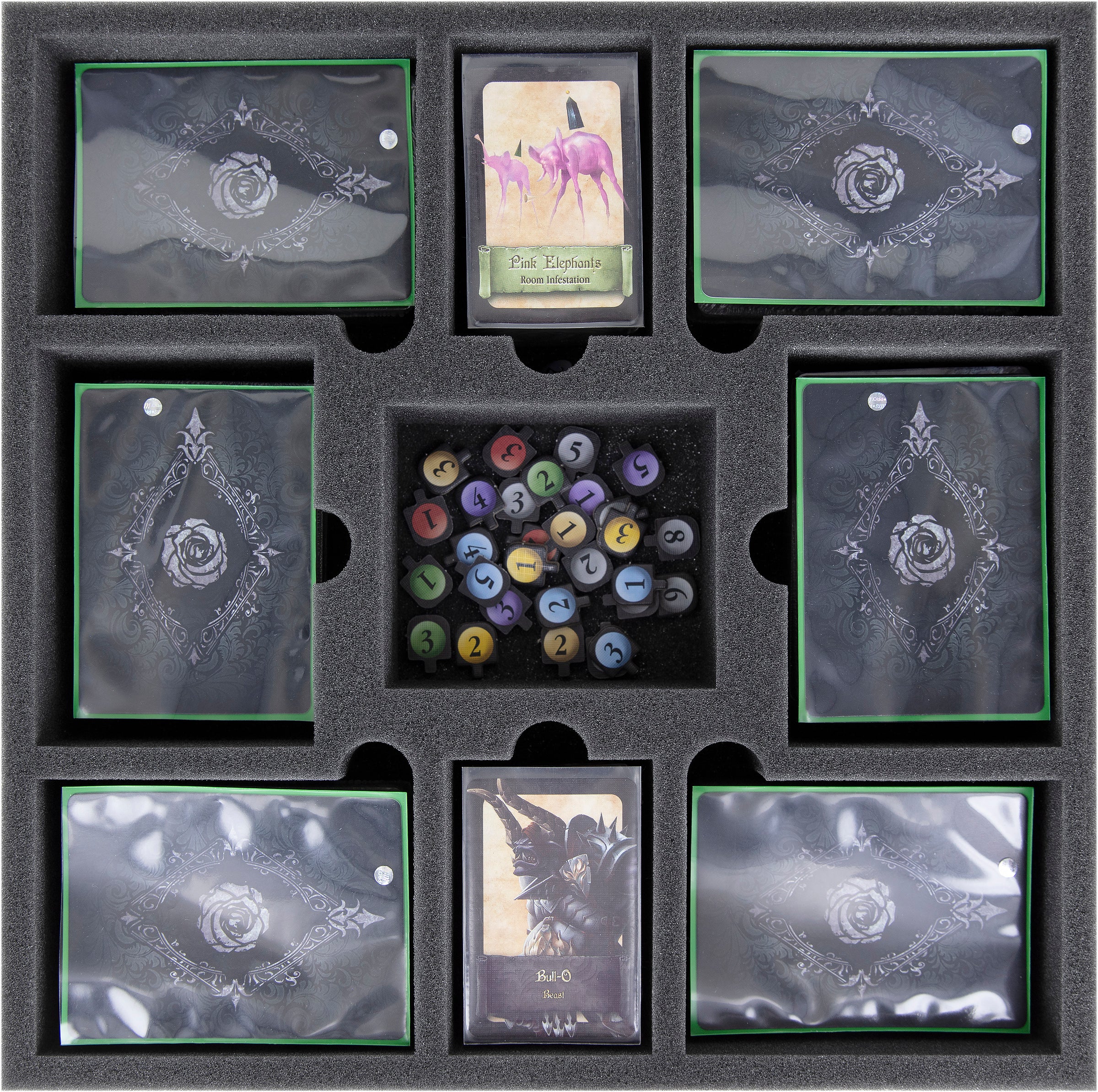 Are you tired of sorting through your figures, tiles, tokens, and dice before each game, only to find that you're missing a marker or a miniature is missing its head? Before you lose your head, this Feldherr Storage Box with foam tray will help you keep your game components neat and safe.