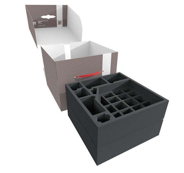 To store all the game material clearly, we have provided the Storage Box with three matching foam trays and two foam inserts.