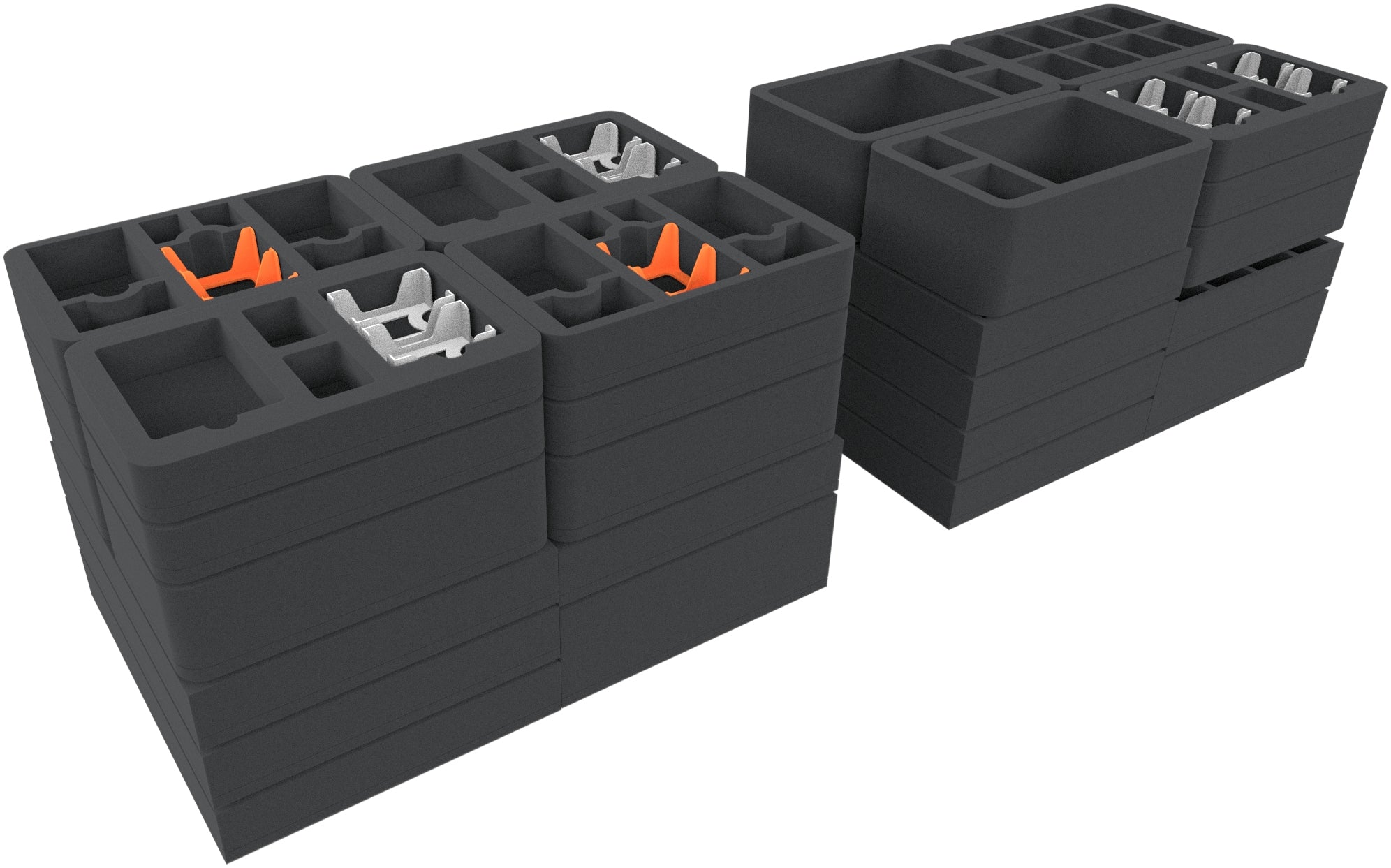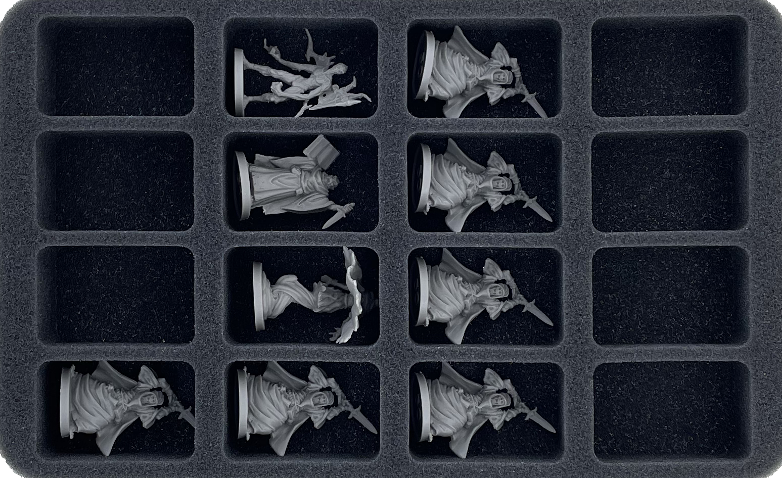 • 1 Half-Size foam tray with 8 compartments each for protruding miniatures + small game material (HS035BF02BO)