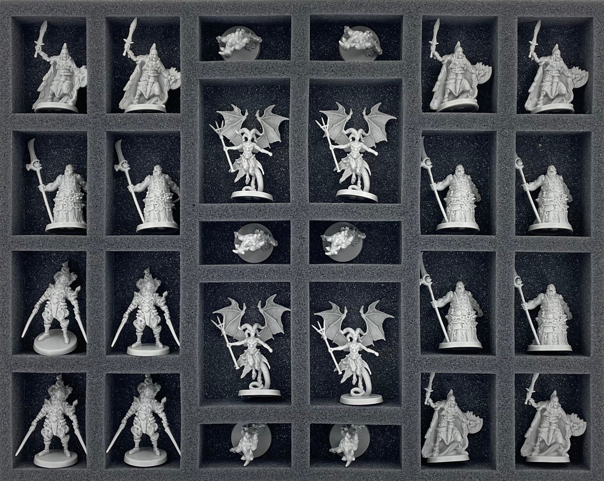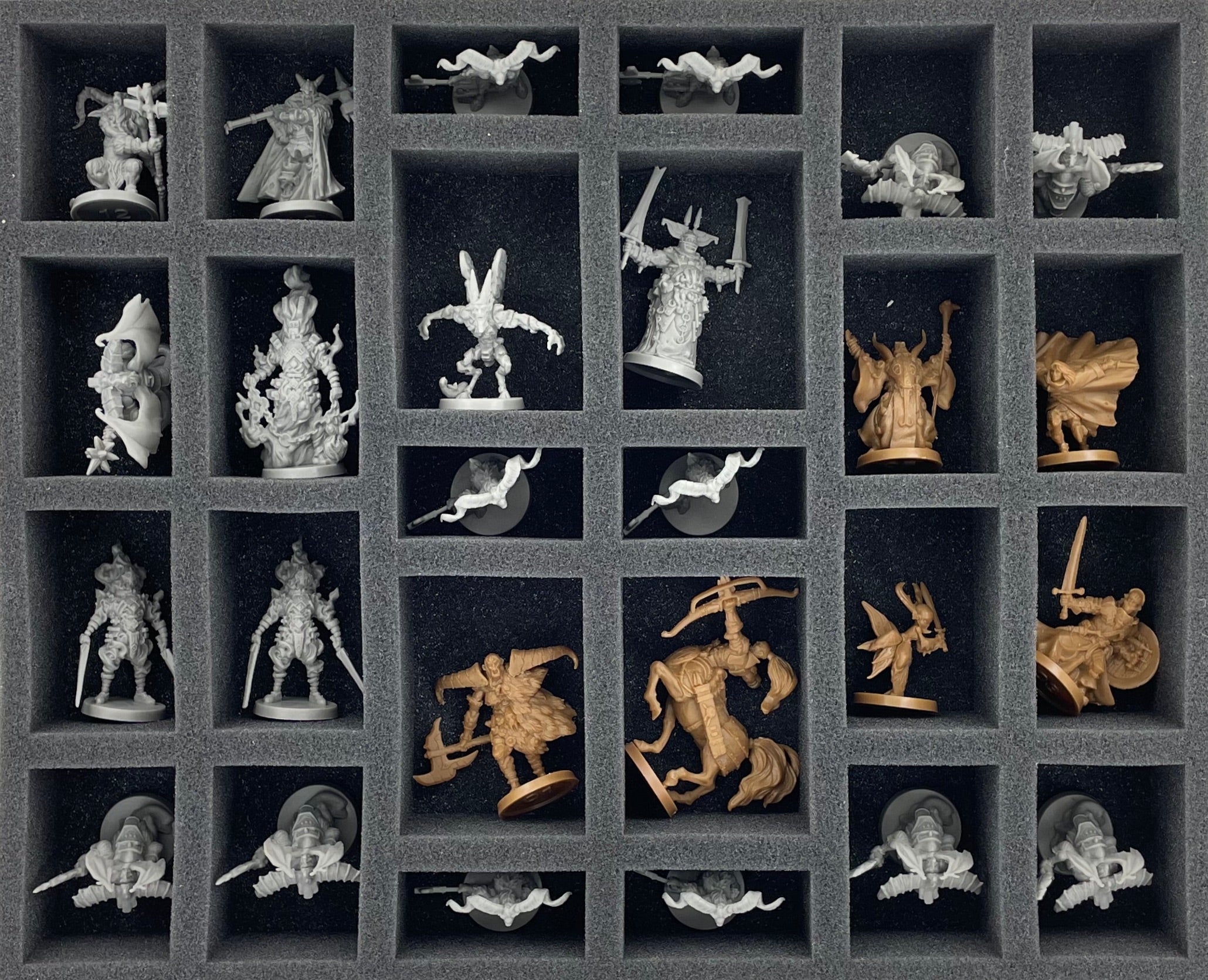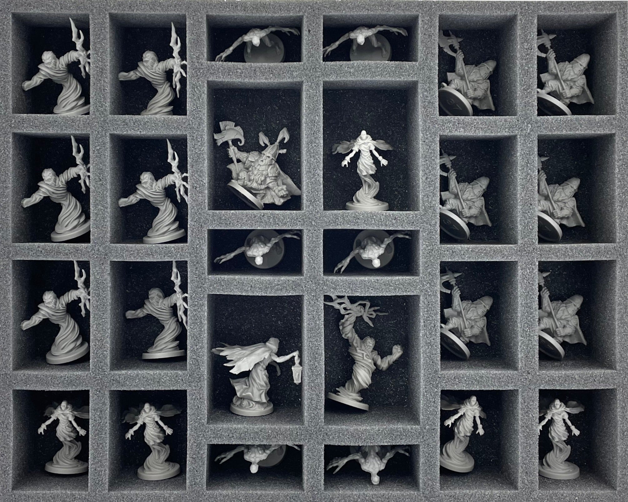 • 1 Half-Size foam tray with 8 compartments for protruding miniatures + tokens (HS040BF02BO)
