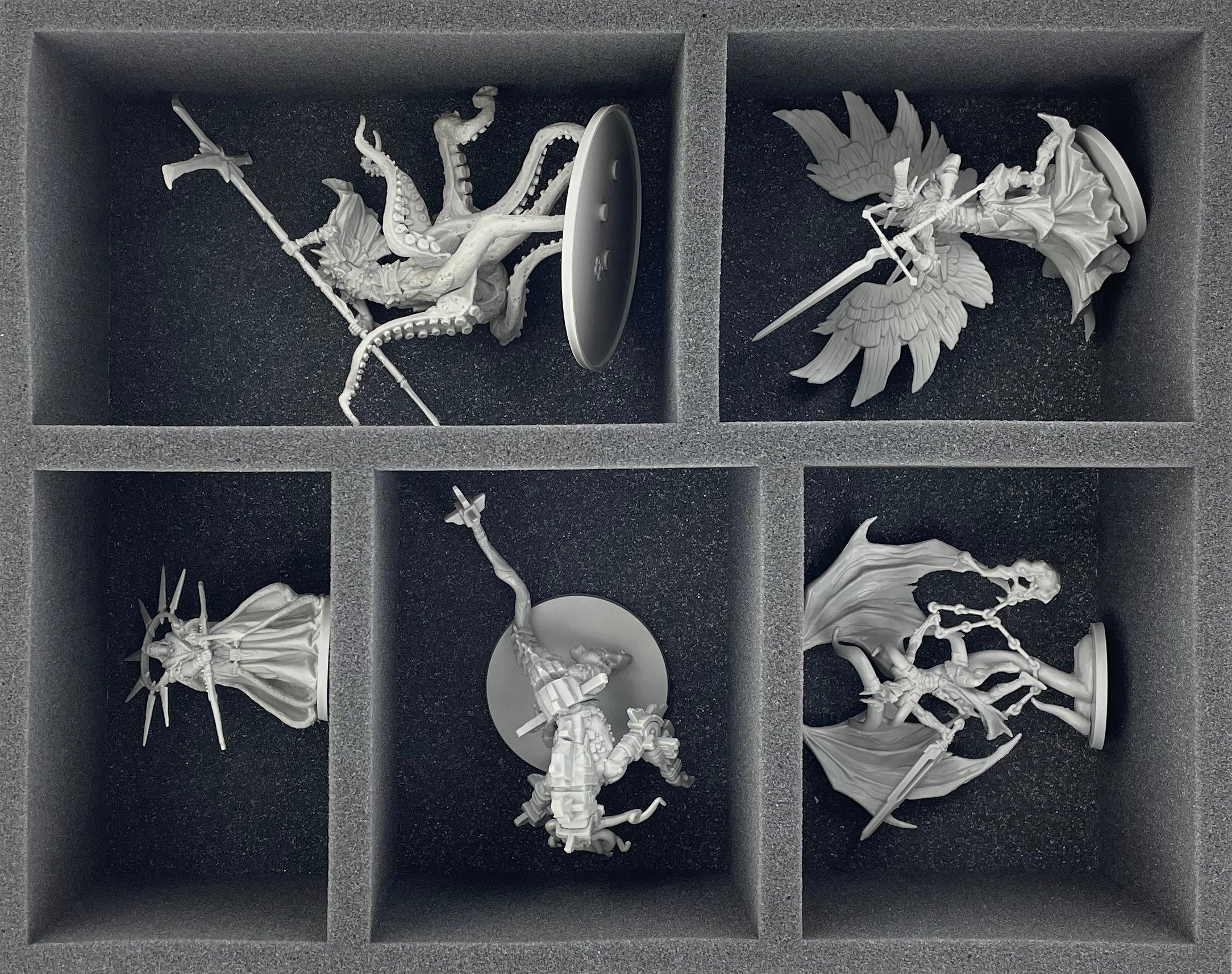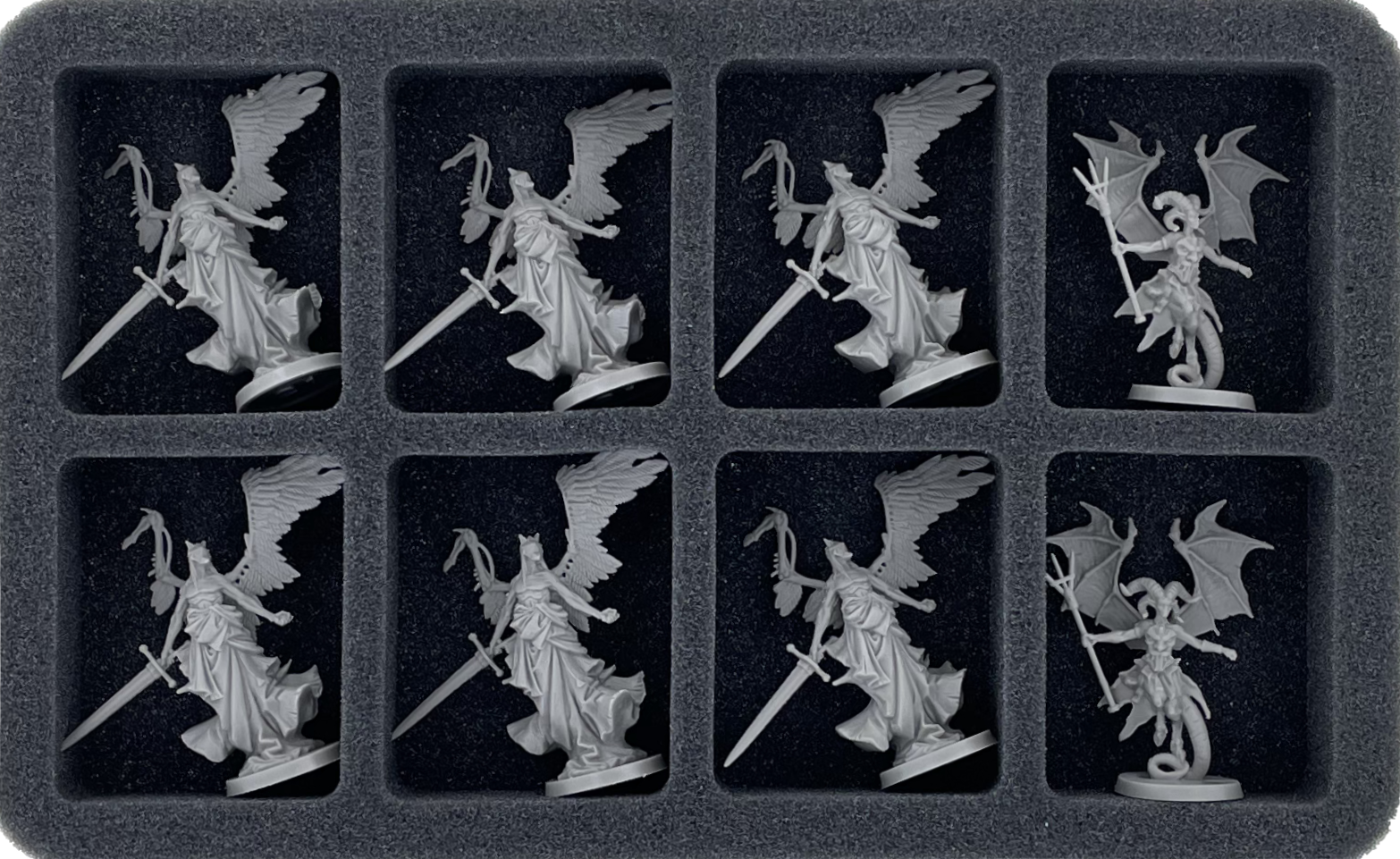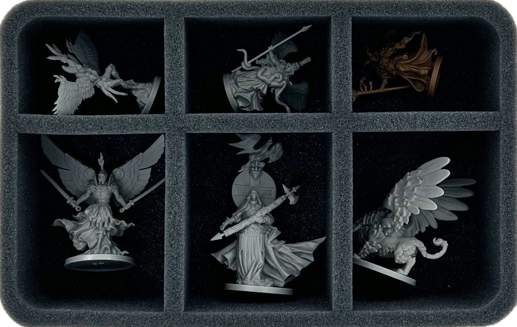 • 1 Full-Size foam tray with five compartments for large miniatures like Archangel Michael (FSMFBQ095BO)