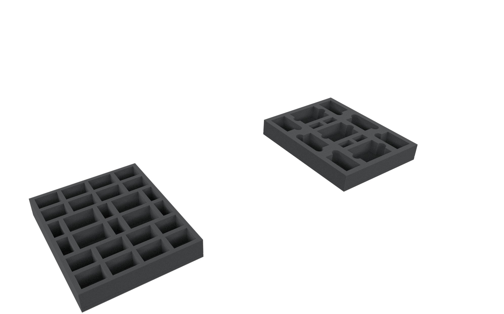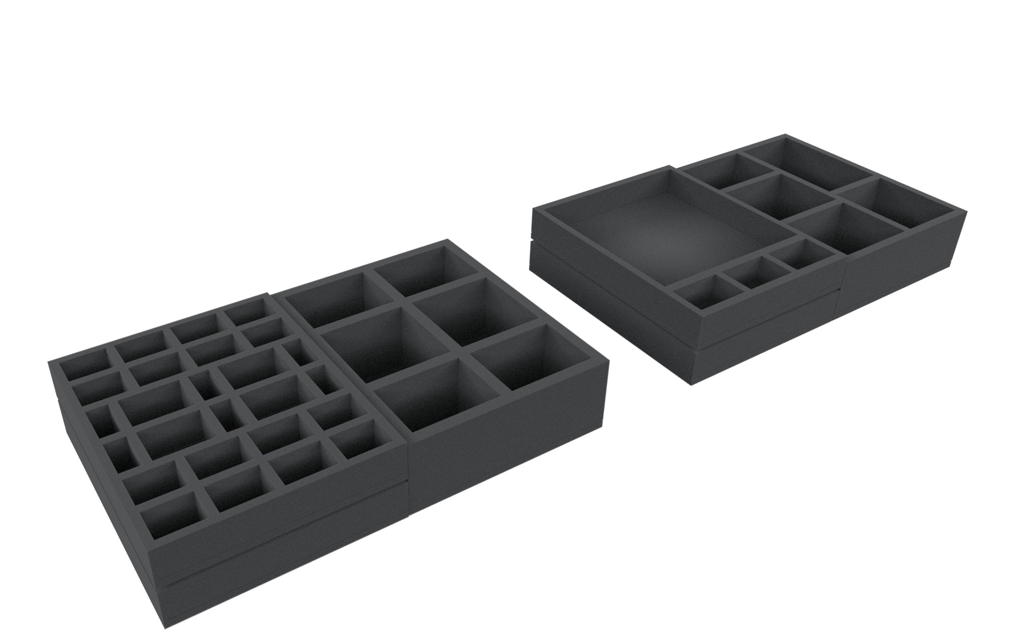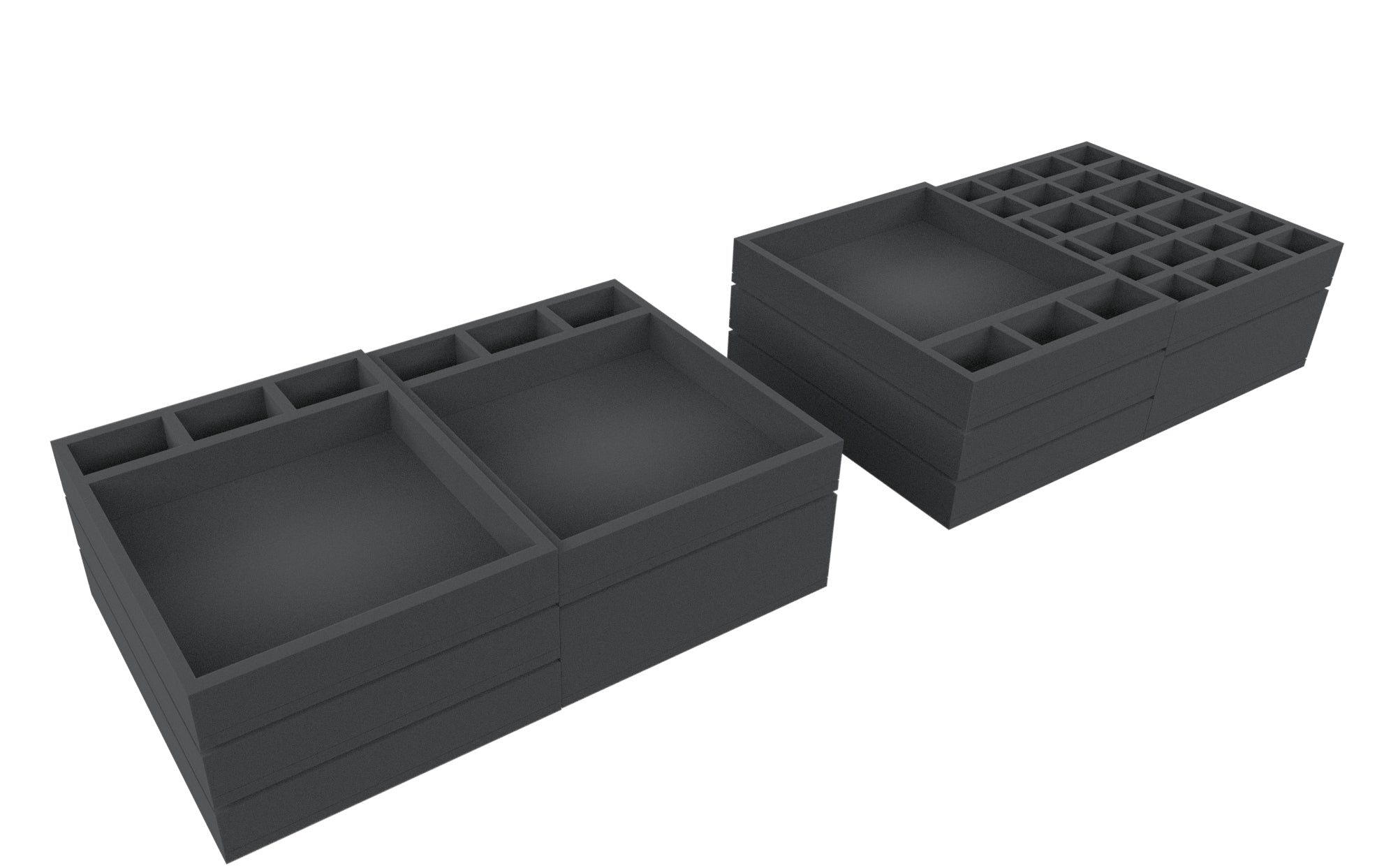 • 2 Half-Size foam trays with five compartments each for large and protruding miniatures (2 x HSMFGD060BO)