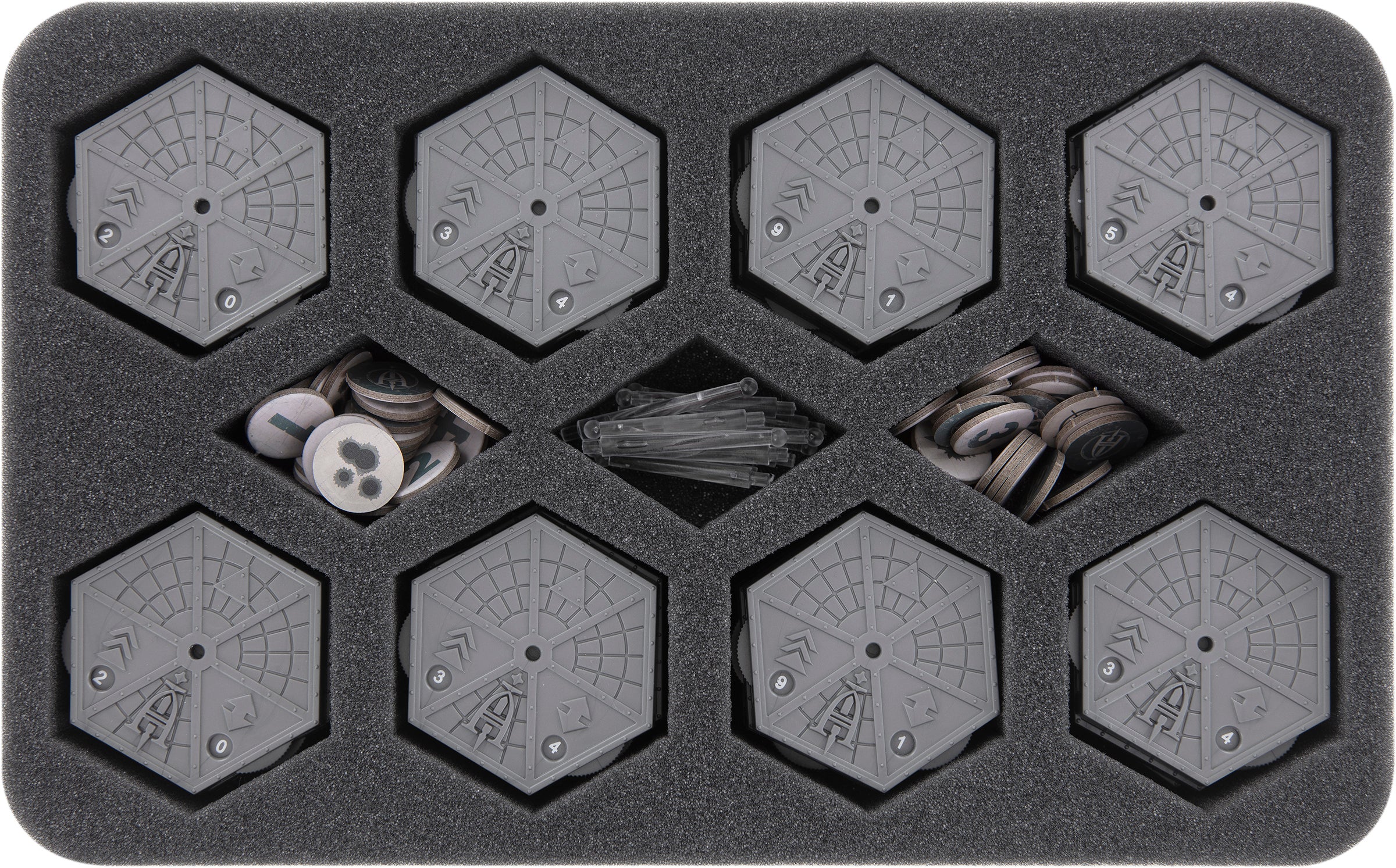 • 1 Half-Size foam tray with eleven compartments for bases and tokens (HS040A012)