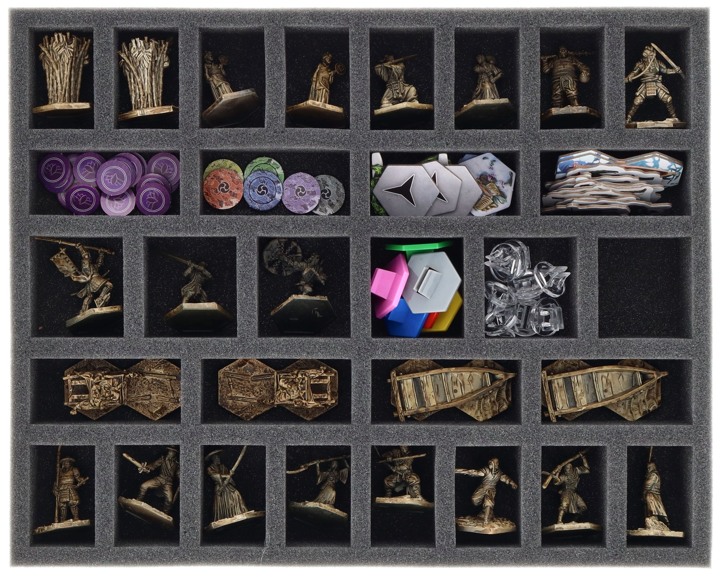 - 1 Full-Size foam tray with 30 compartments for miniatures and game material (FSFJ045BO)