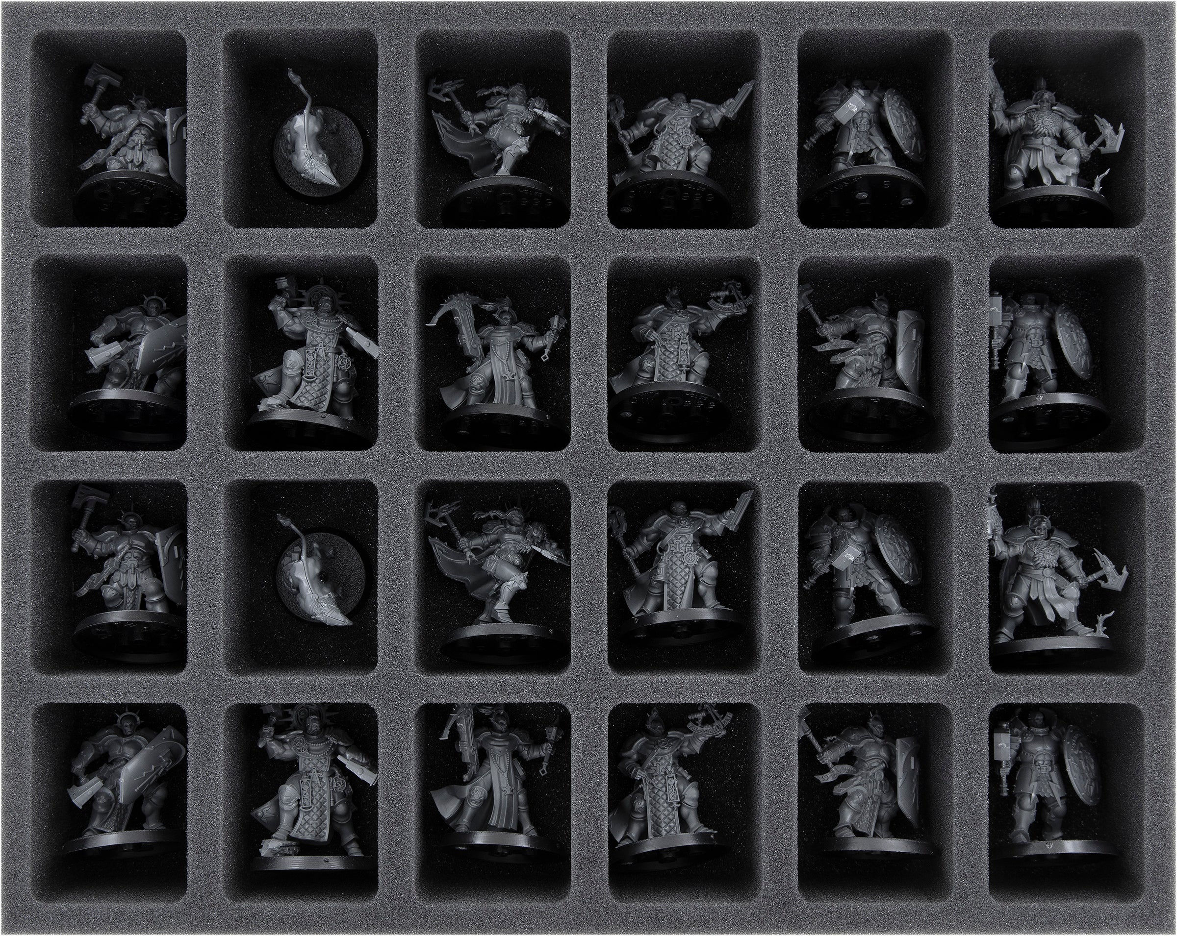 • 1 Full-Size foam tray with 24 compartments each for Archaon Everchosen, the Darkoath Wildfiends, and models with similar dimensions (FS050A070)
