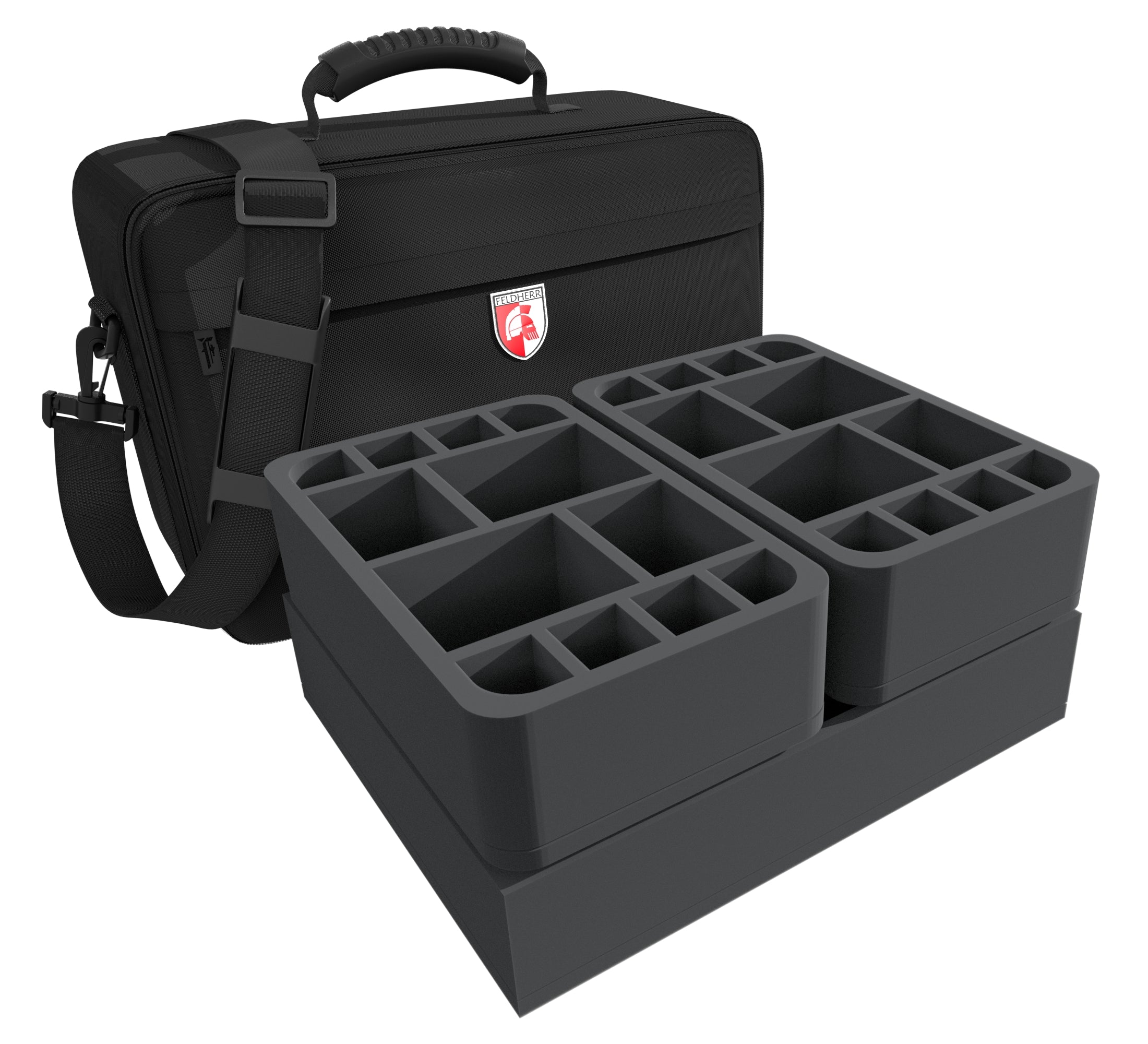The Feldherr MEDIUM PLUS bag is made of particularly hard-wearing material. Padded side panels and a reinforced bottom ensure that the miniatures are optimally protected during transport by car or train.