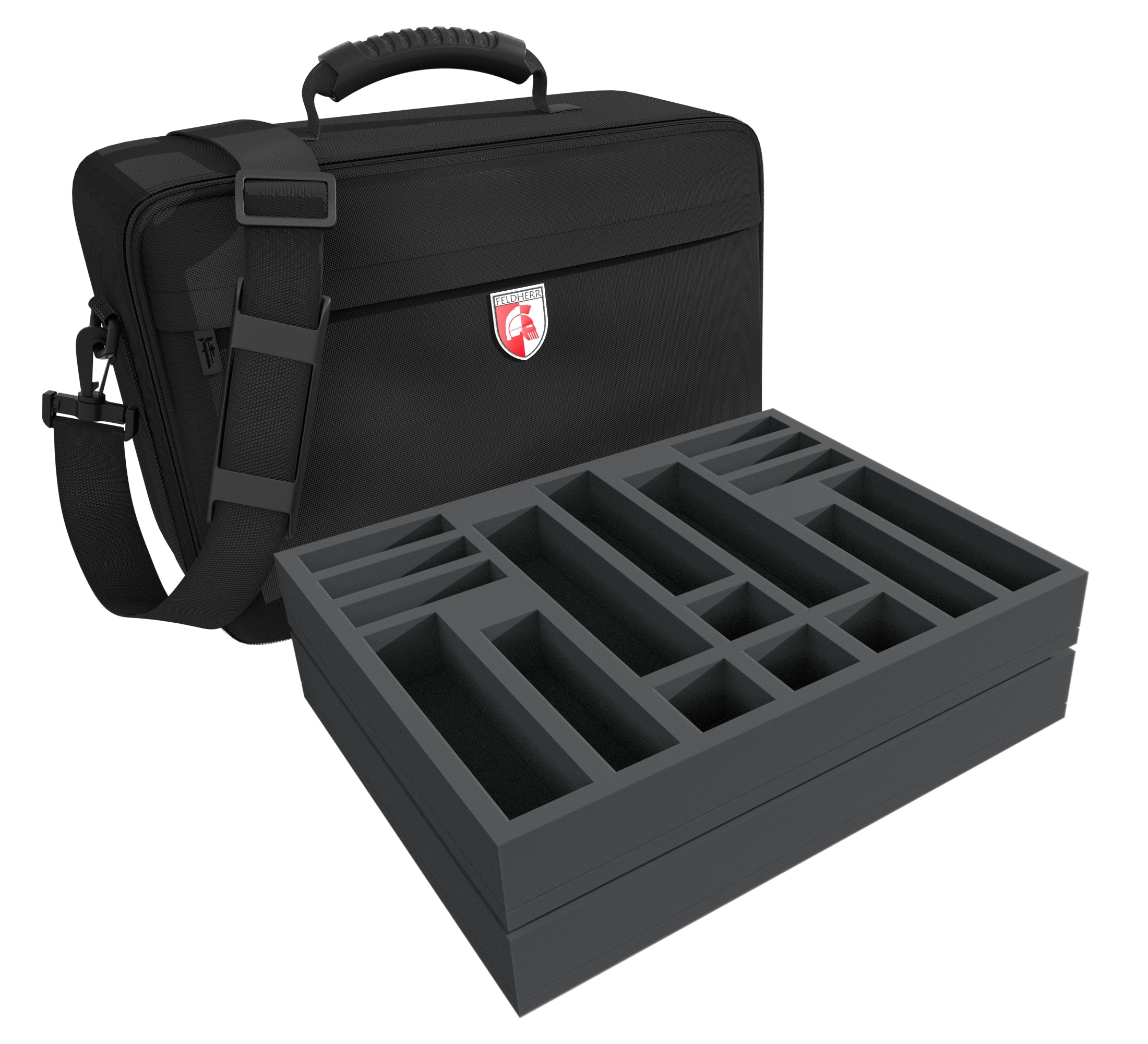 The battle is raging. Mighty guns fire deafening volleys. Exploding barrel bombs burst metal. Fire vaporizes the water. Thanks to this Feldherr MEDIUM PLUS bag you will not have to worry about your models anymore. Four Feldherr foam trays give your miniatures enough space to store them all.