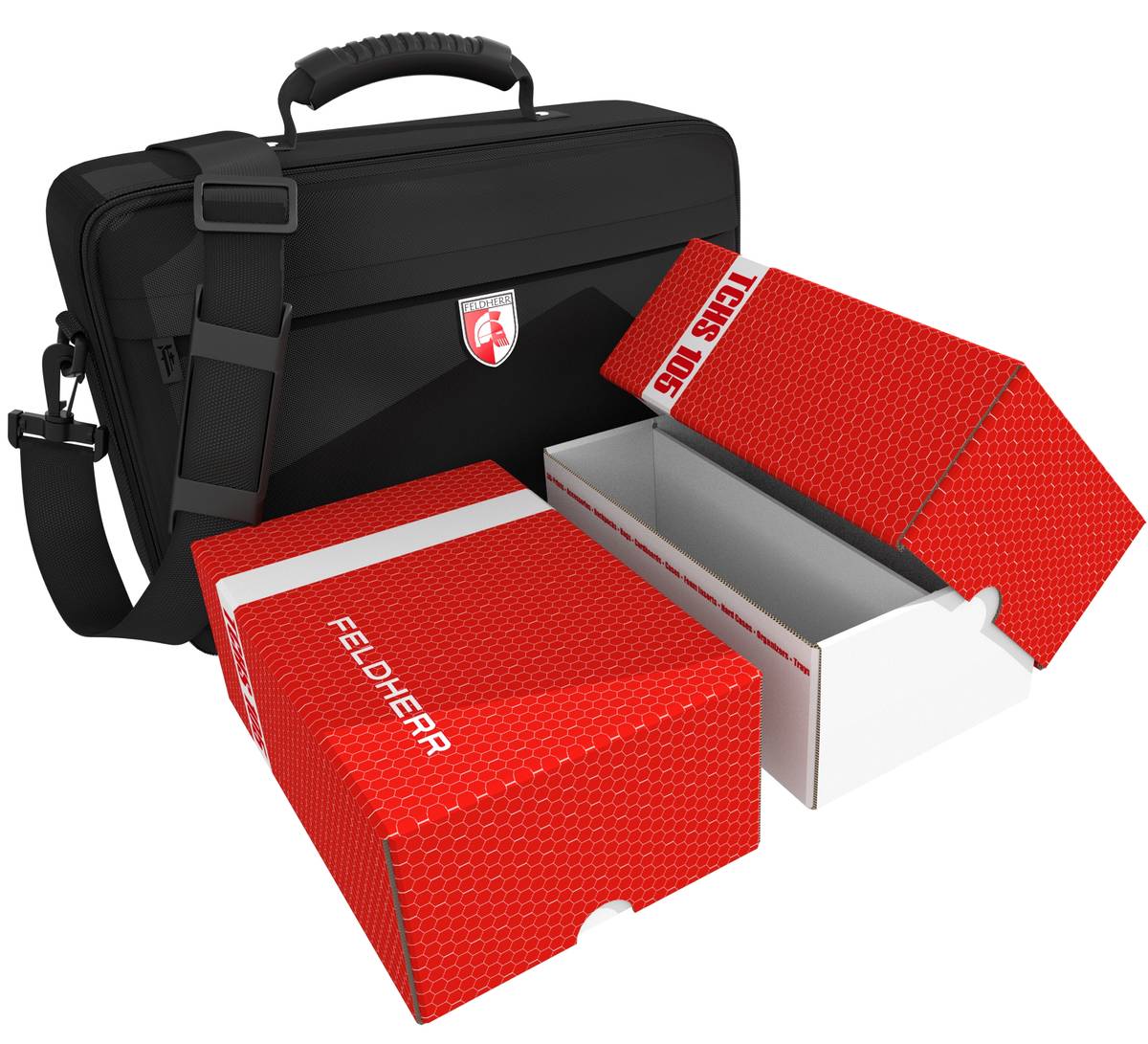 The Feldherr MEDIUM bag with two TCHS105 Storage Boxes and convenient Organizer inserts provides ample space to store and transport up to 2600 cards plus game components. So well equipped, you don't have to fear kinked corners or lost tokens.
