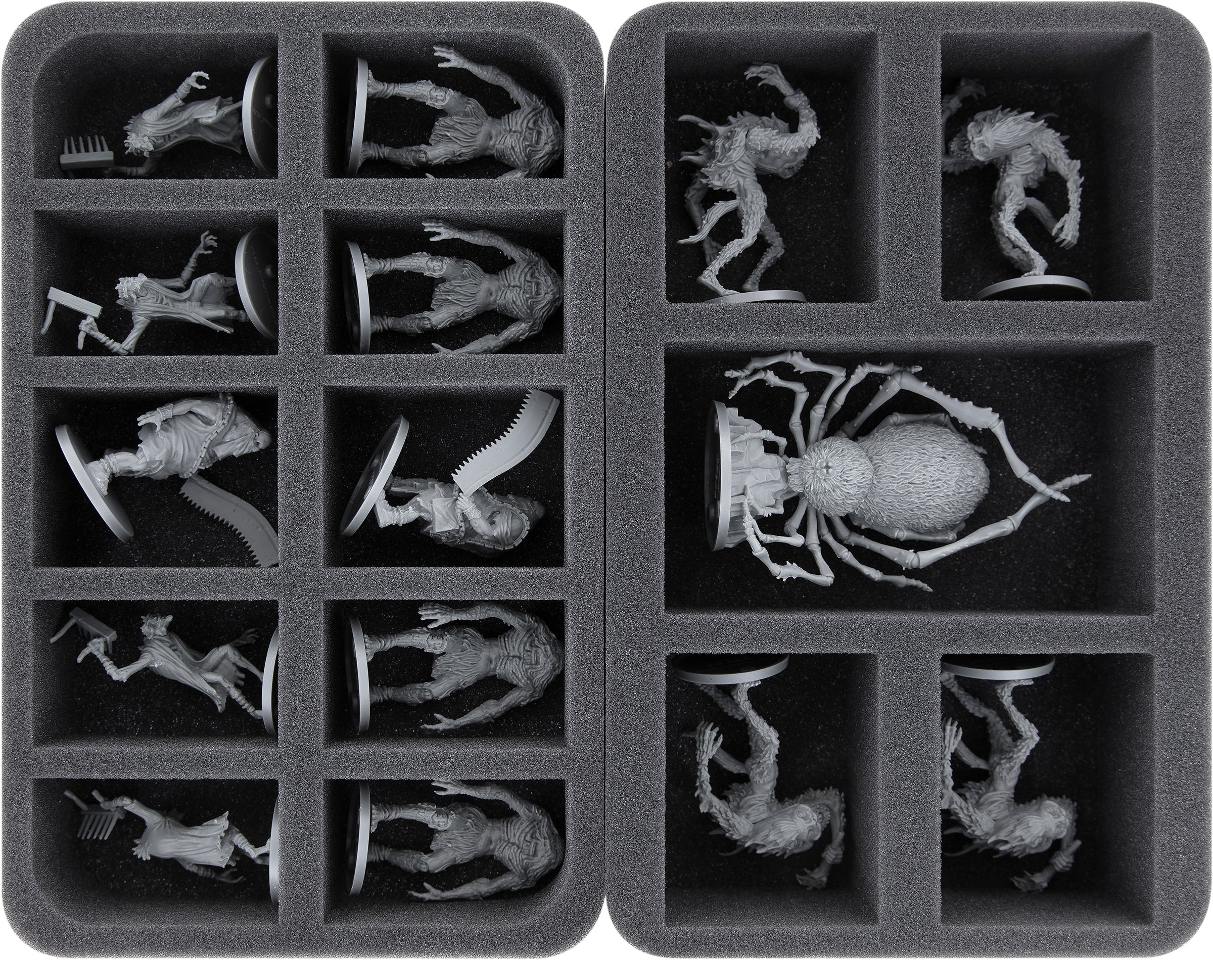 Thanks to the precisely cut compartments, the miniatures have a tight fit. Even if during the transport the moon falls from the sky and the hunter's dream trembles, the figures do not slip and remain in place. The soft, fine-pored foam protects delicate details from breaking off and the colors of your painted models from scratches and paint abrasion.