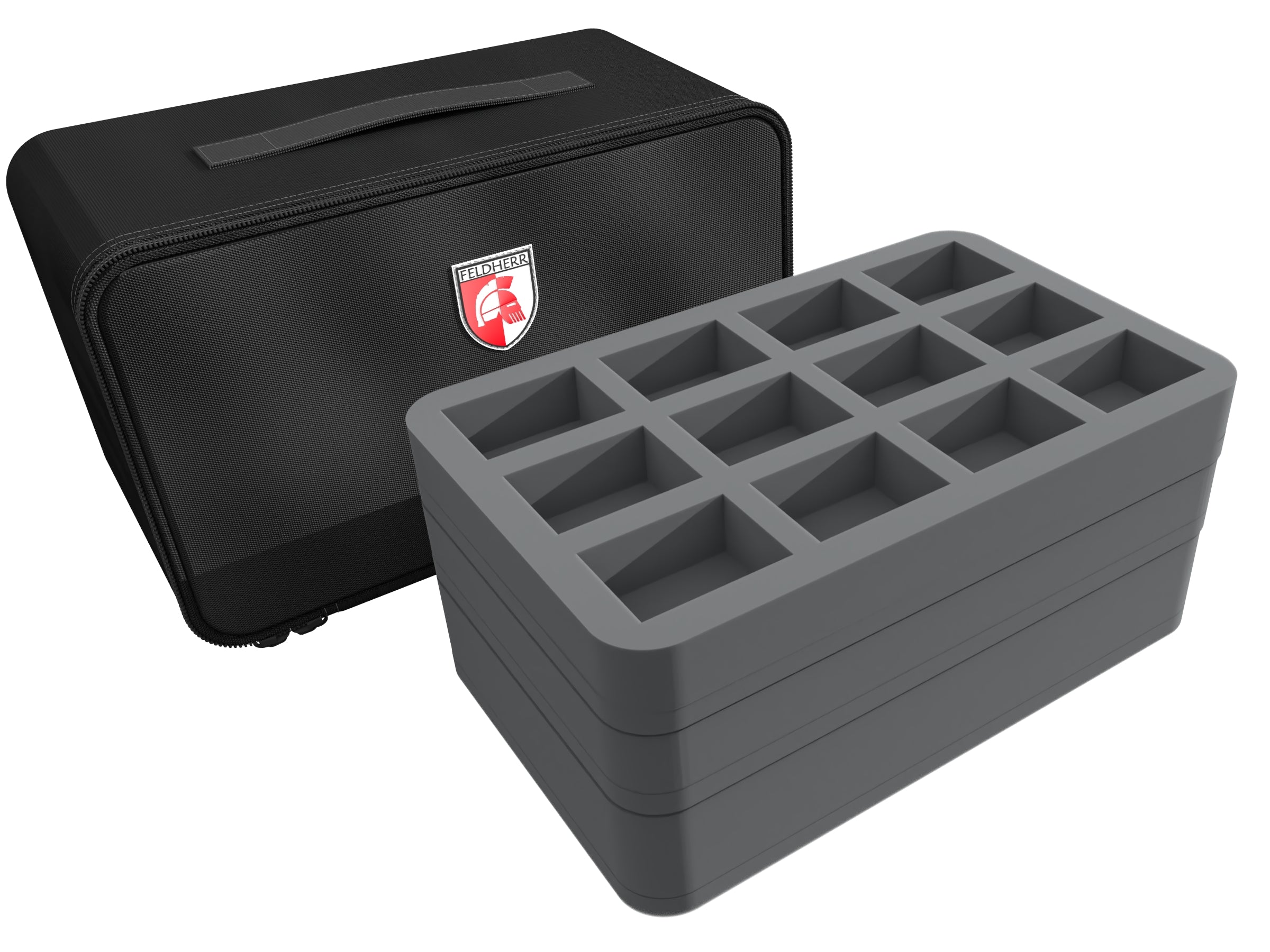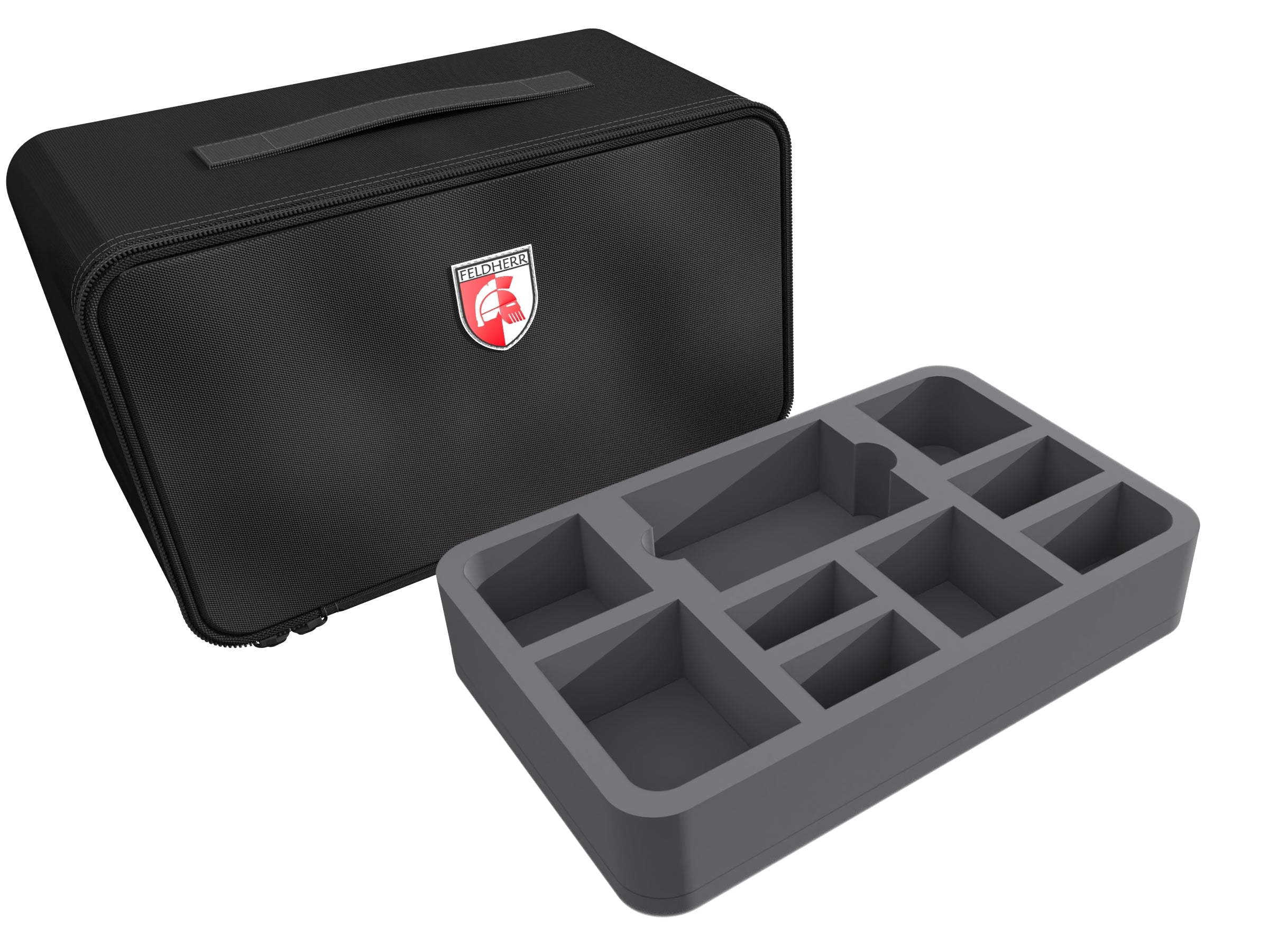 In this compact MINI PLUS bag your miniatures are optimally protected. You can safely transport up to 61 warrior figures to the battlefield in the custom Feldherr foam trays.