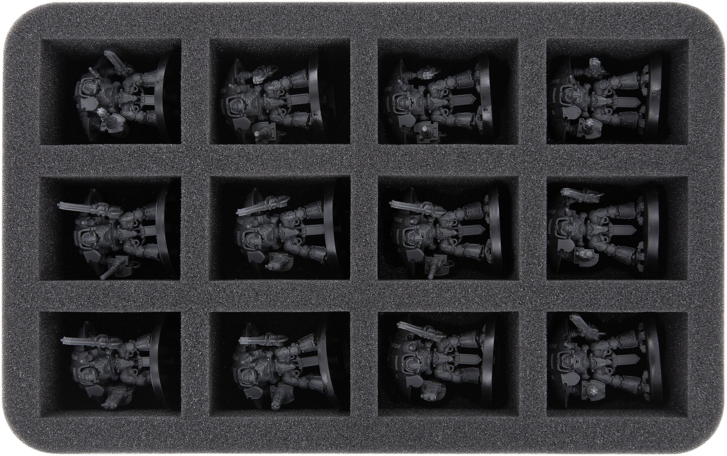 - 1 Half-Size foam trays with 12 compartments for Questoris Knights and models with similar dimensions (HS050WH29)