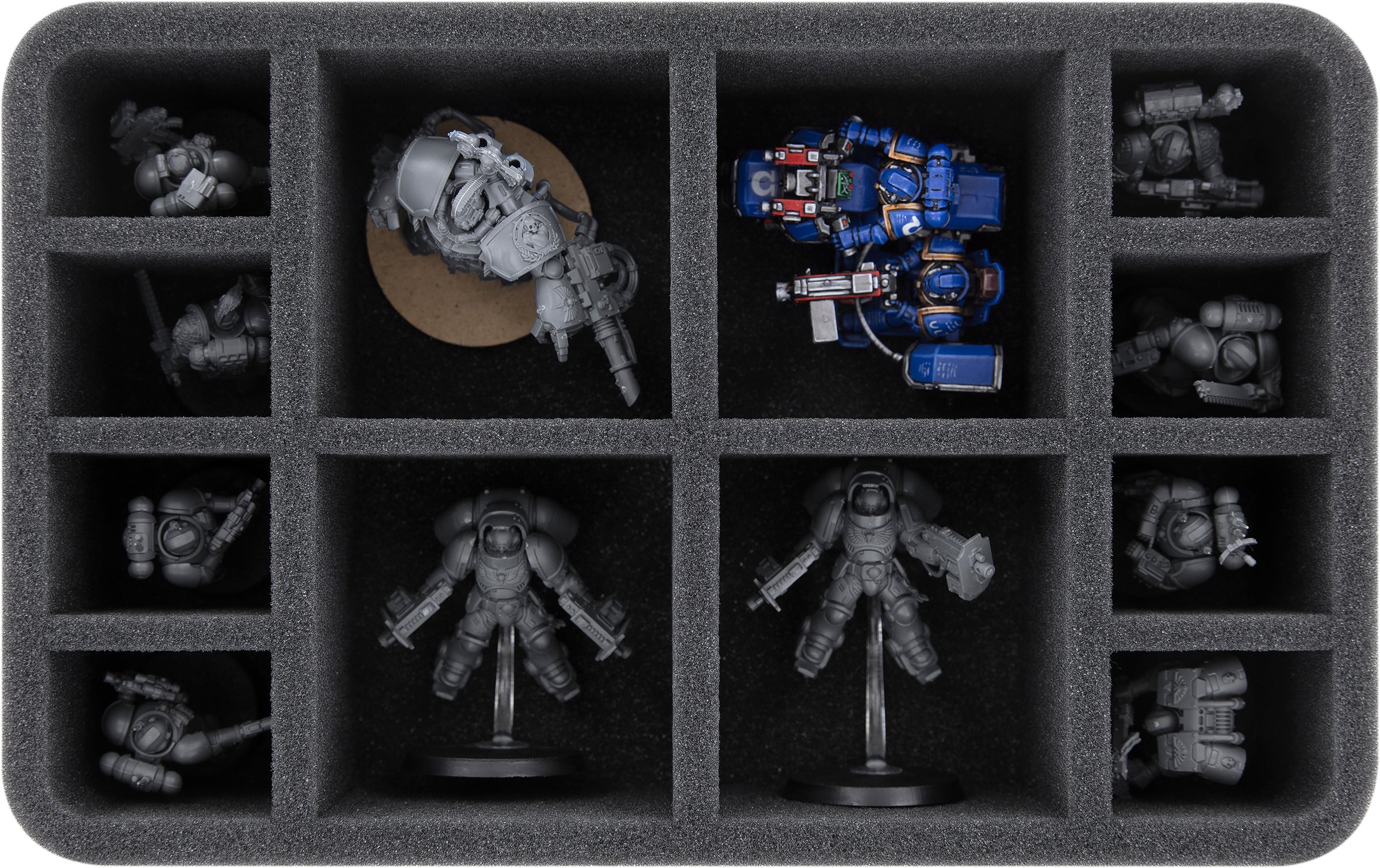 - 1 Half-Size foam tray with 12 compartments for Marneus Calgar, Victrix Guards, Tigurius and Intercessors (HS070A017)