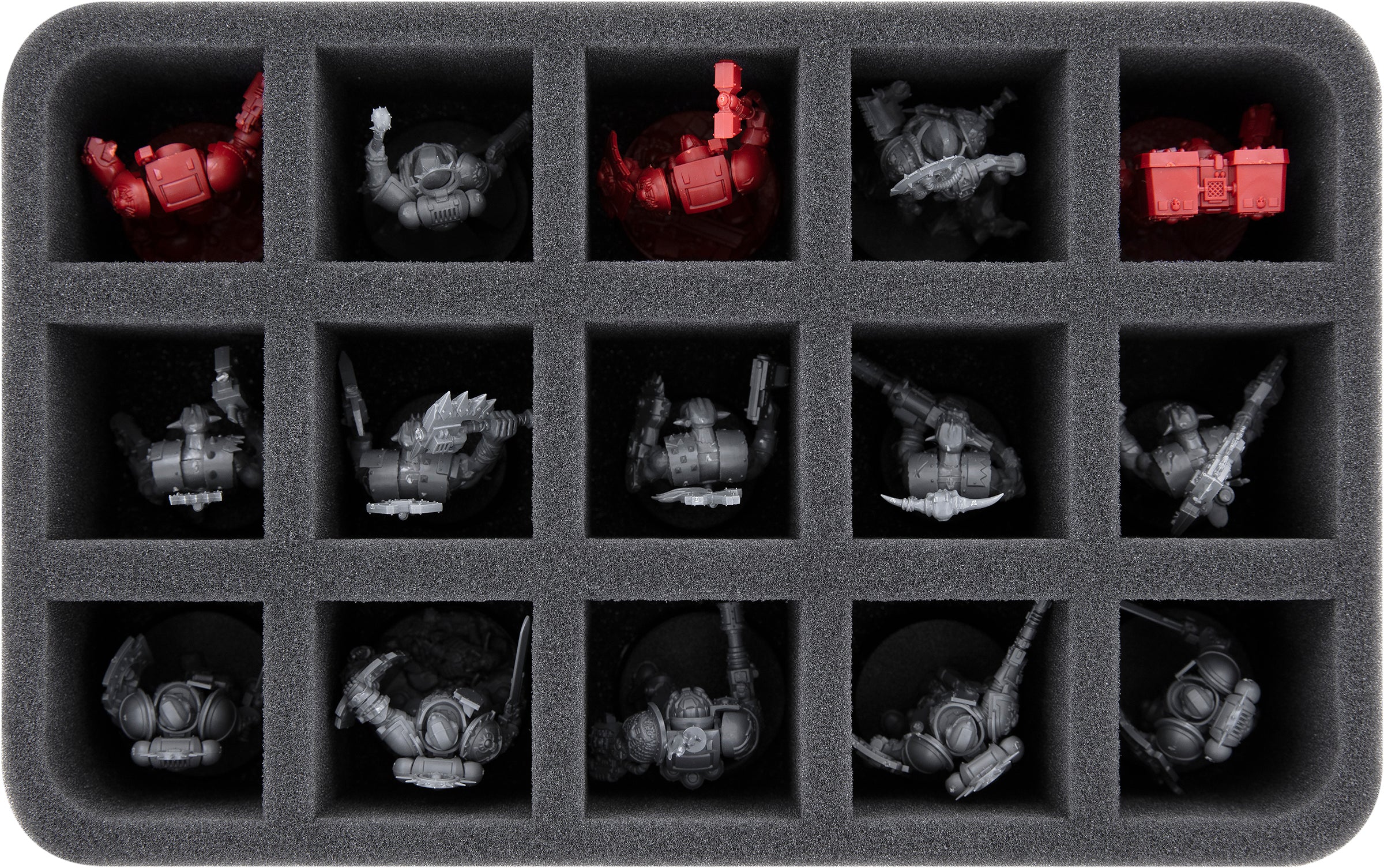 - 1 Half-Size foam tray with 15 compartments for Intercessors, Hellblaster and Bladeguard Veterans (HS070A012)