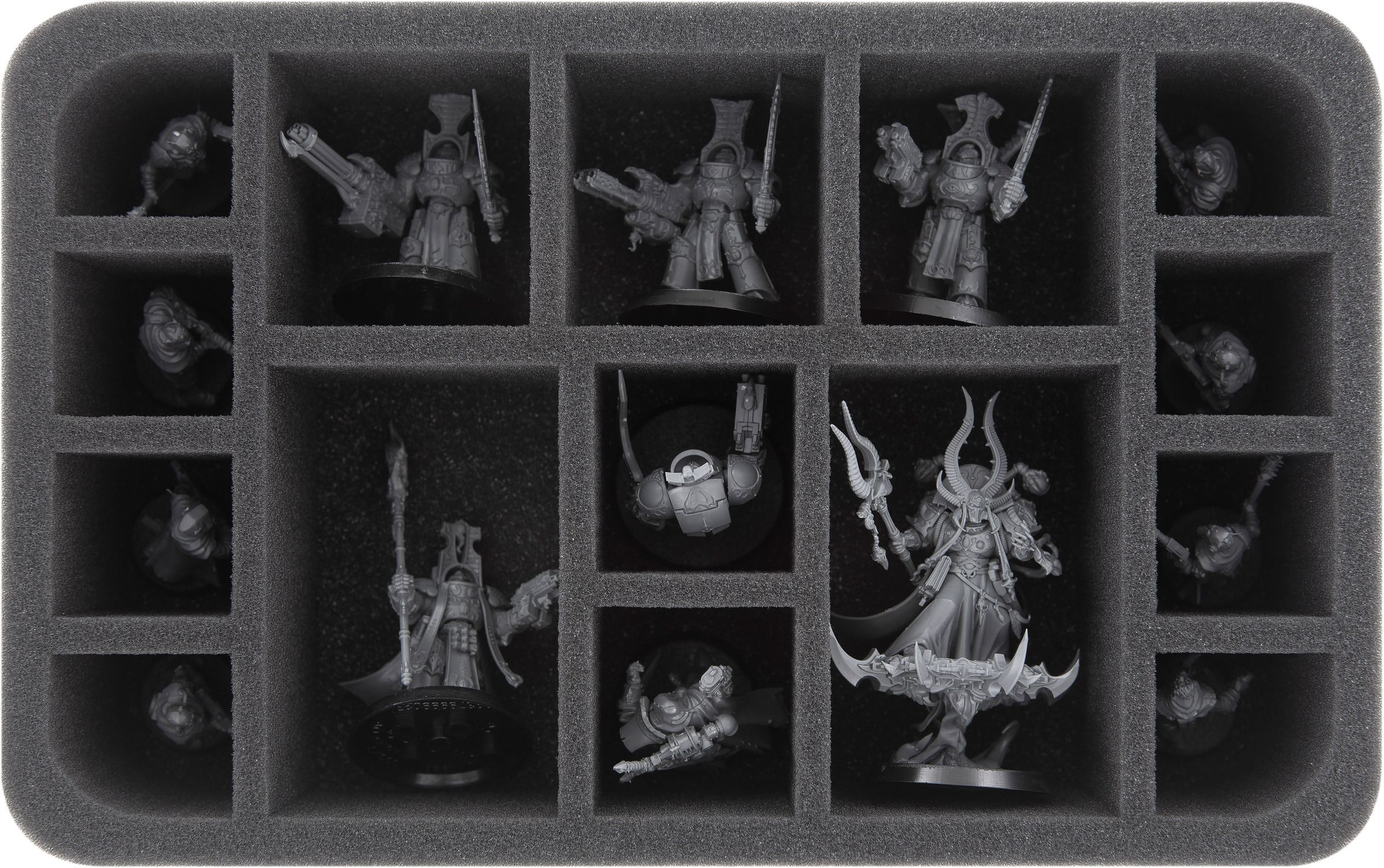 For example, the small compartments are ideal for the Tzangoors, the medium-sized compartments for the Scarab Occult Terminators, and the large compartments are ideal for character models like the Magister Infernalis.