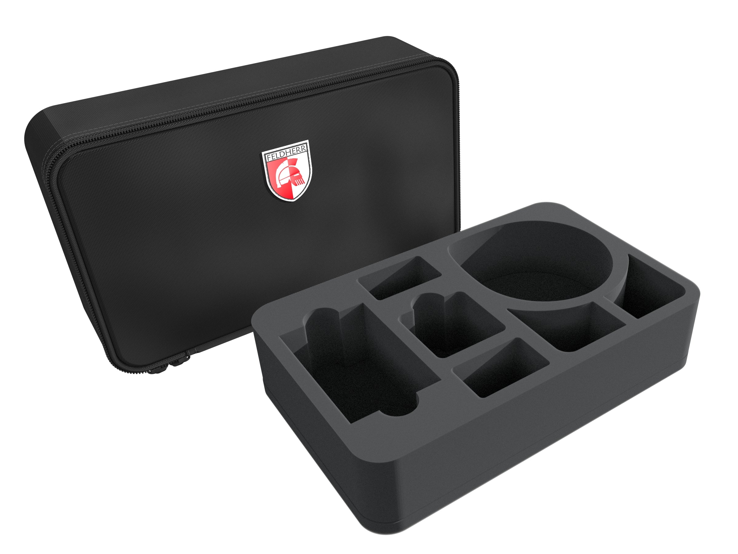 Adam Poots did it again: The miniatures of "Vignette of Death: White Gigalion" are among the best the board game market has to offer. White Gigalion and the four survivors are brimming with breath-taking, fantastic details. To make sure you can safely store and transport your exclusive models, Feldherr has this MINI bag including a high-quality, custom insert for you.