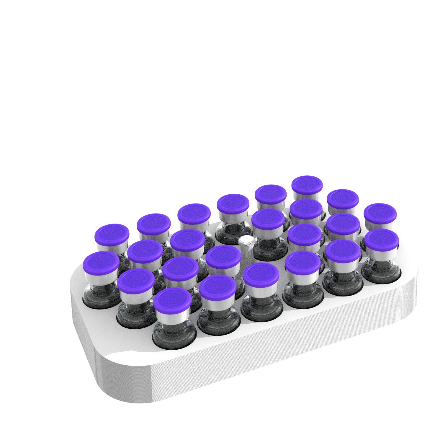 Each compartment has a diameter of 16 mm, making it ideal for storing of vials with a bottom diameter of up to 16 mm (sample vials 4 ml or mini-vials 6 ml), such as those used with Covid-19 vaccine vials/ampules [e.g. Comirnaty (BNT162b2, Biontech/Pfizer)]