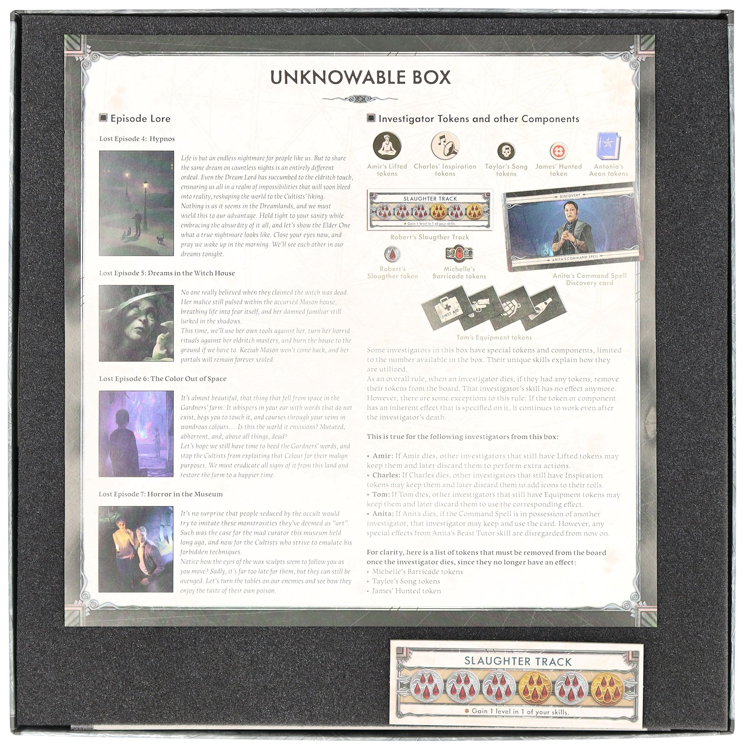 - The large monsters and episodes will continue to be stored in the original cardboard boxes of the Unknowable Box.