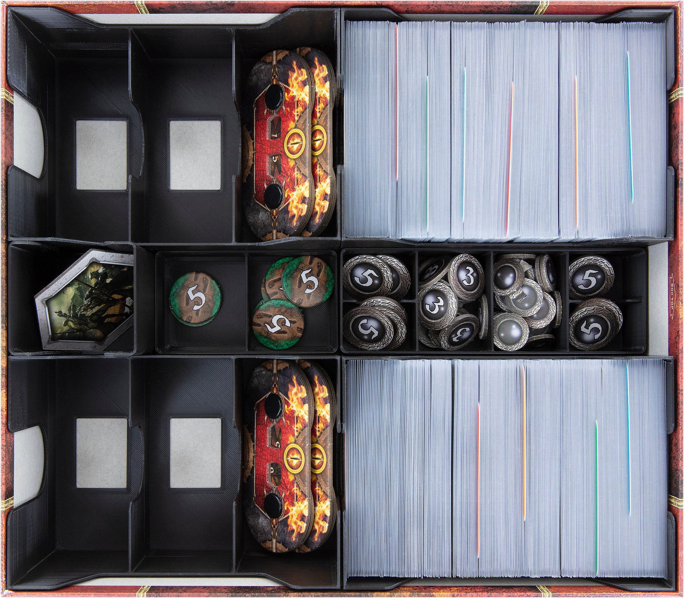 To make sure you don't lose track of all the cards and tokens, the high council of our designers deliberated on the fate of your board game box. The result is this Organizer for your board game box. Various card and token holders support you in your adventures and ensure that you can always focus on your adventure and not be distracted by lost game material.